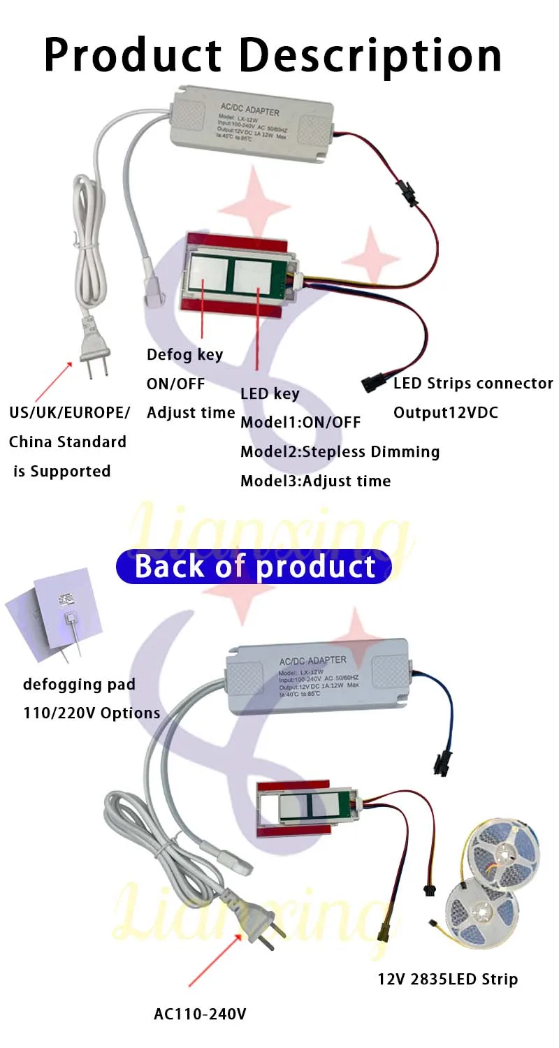 - Product Features: Defogging+stepless dimming