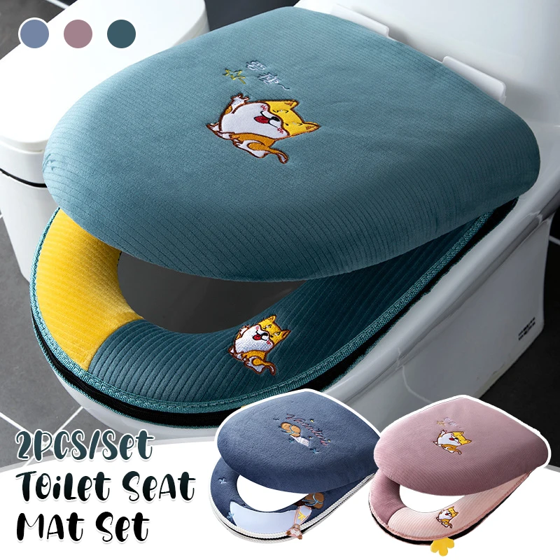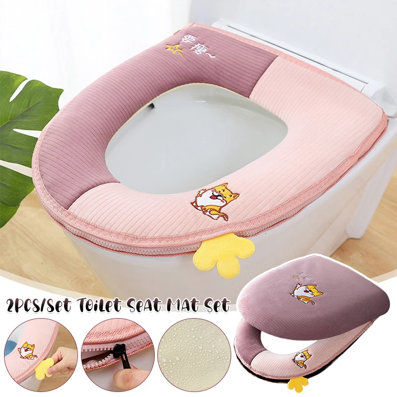 2 pièces/ensemble coussin + couvercle couverture siège de toilette tapis ensemble salle de bain universel chaud doux lavable Closestool siège étui hiver coussin Bidet tapis