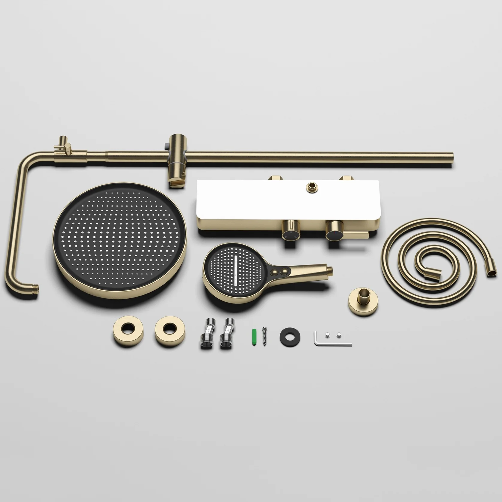 【Matériau du set de douche】★ Utilisation d’un ensemble de douche en laiton de qualité supérieure, finition noir mat/or brossé/finition chromée/gris pistolet, douche en acier inoxydable, mitigeur en laiton et pomme de douche en plastique abs de haute qualité peut Durable sans odeur particulière.