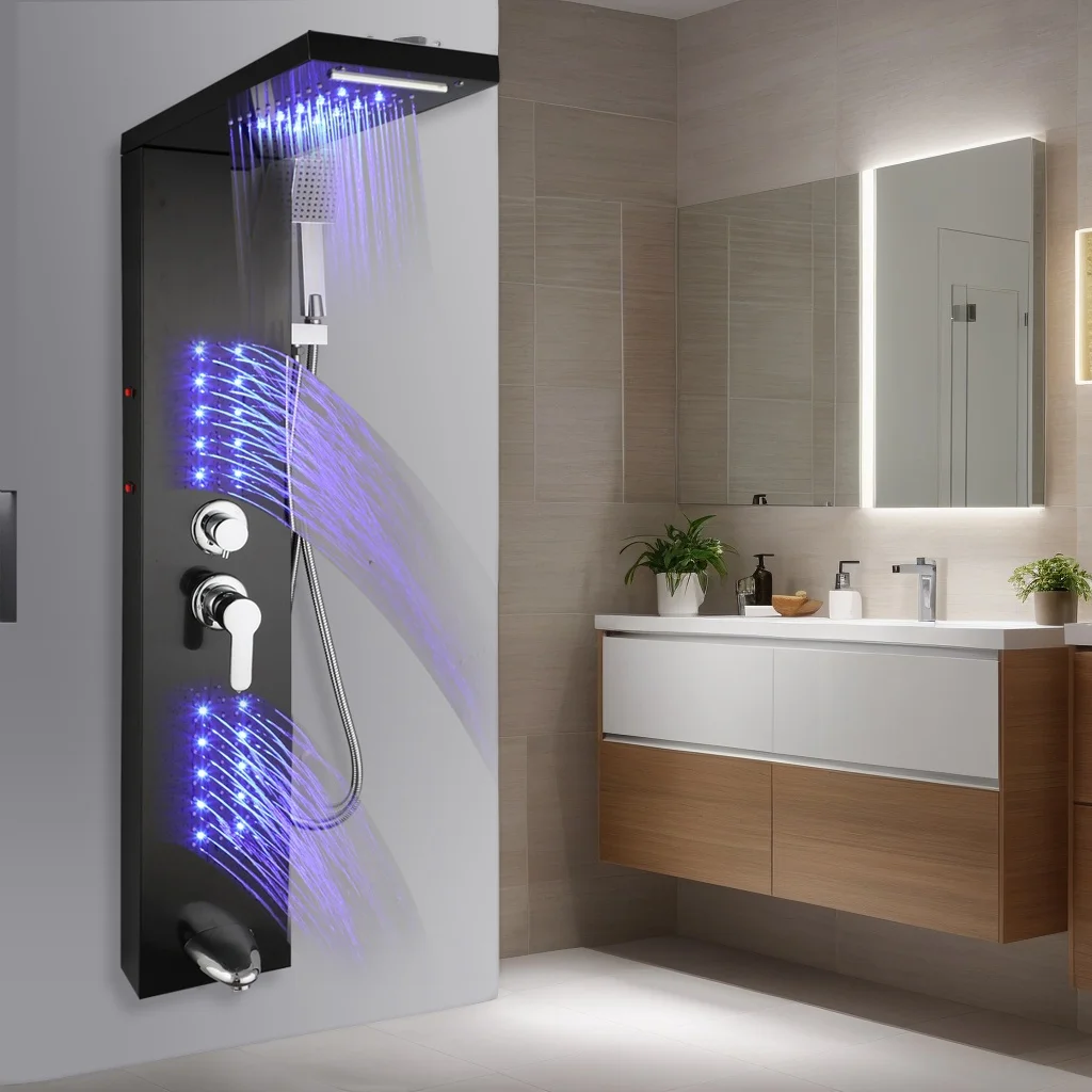 Panneau de douche 5 fonctions : Profitez de plusieurs options de douche, comprenant une pluie, un massage, une main, une cascade et plus encore.