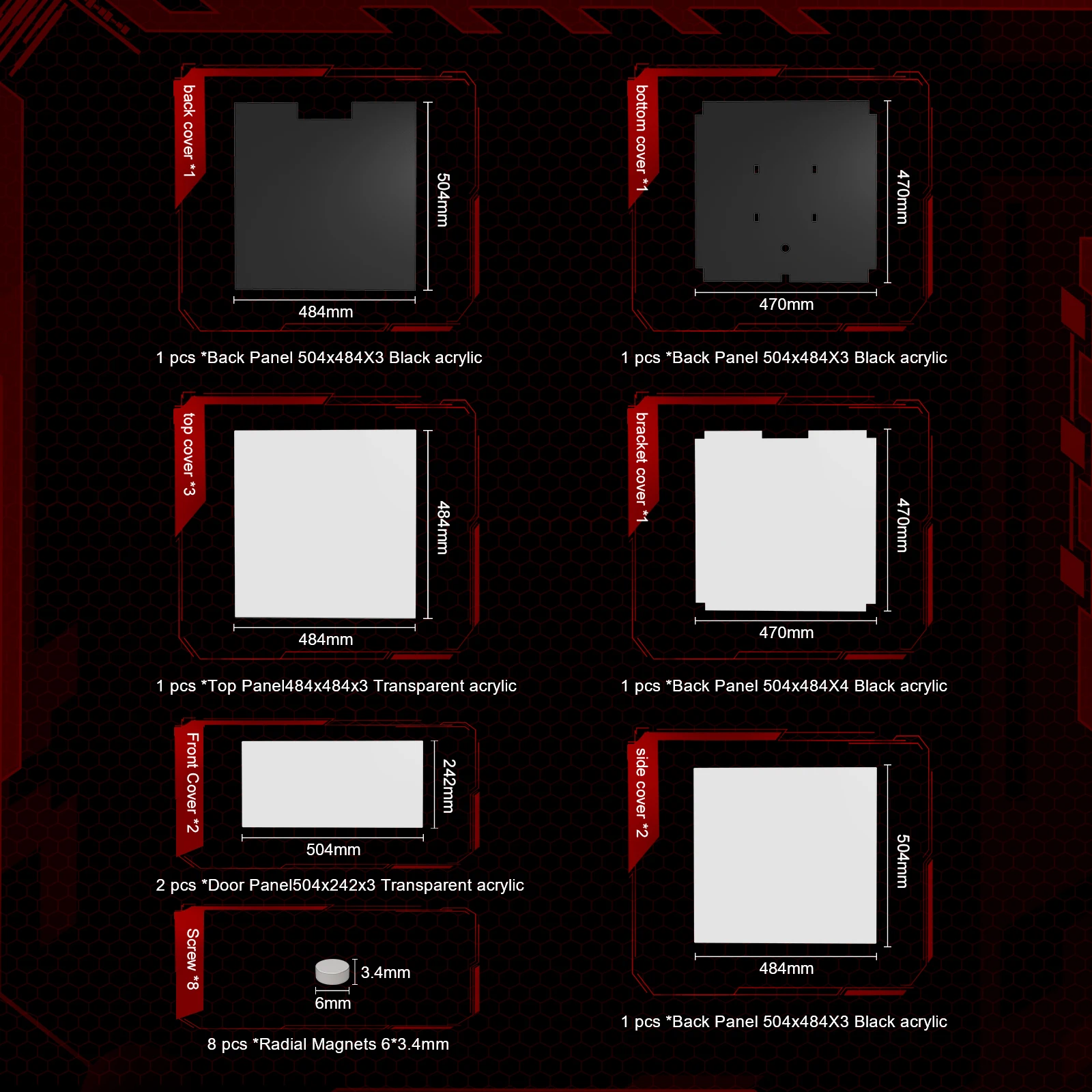 1 pcs * Top Panel 484x484x3 Transparent PC (top cover)