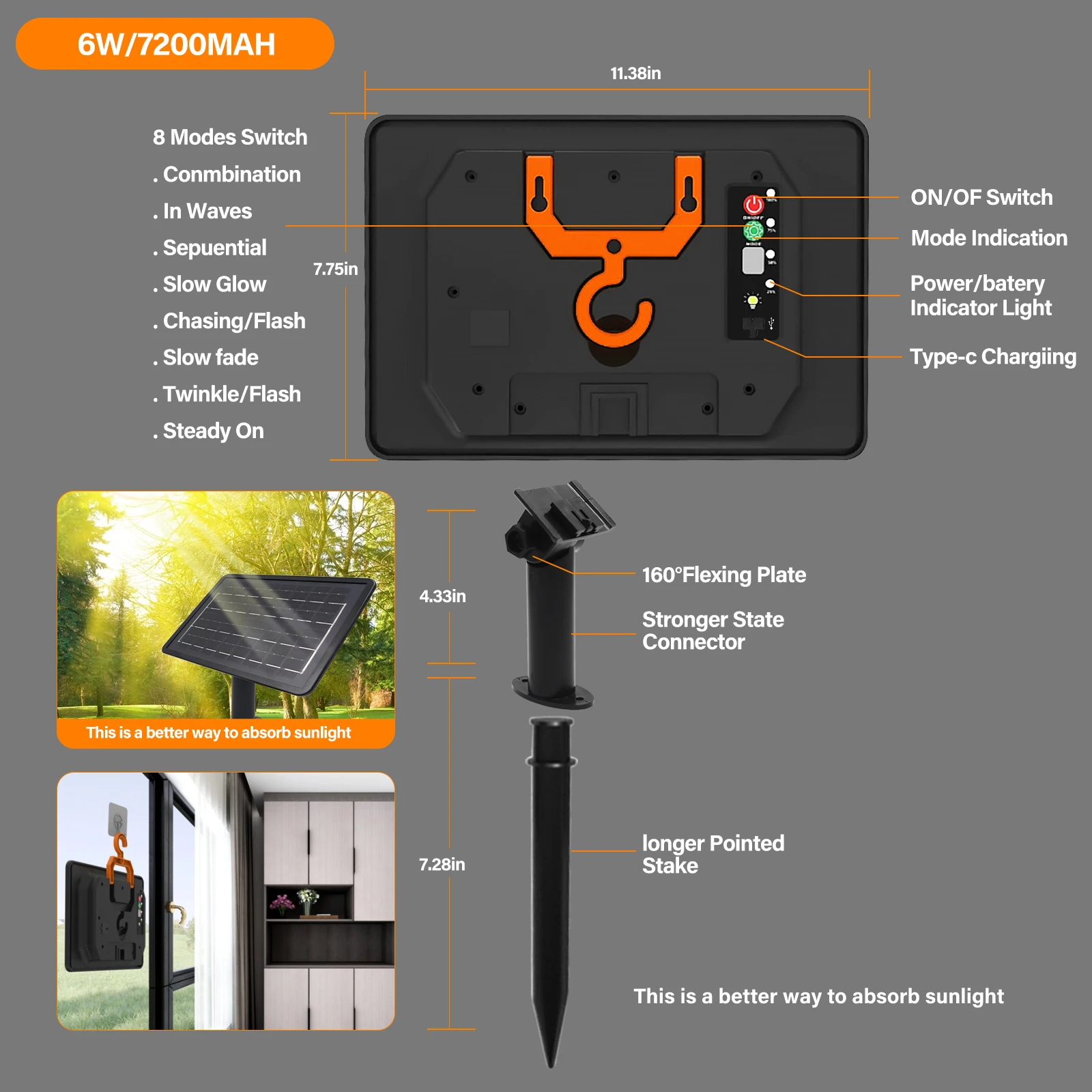 Le panneau solaire est inégalé par la lumière pendant charger le produit utilisant le câble USB (connecté à un adaptateur secteur). Il n’y a pas besoin de couvrir pour rendre le travail léger pendant la journée.
