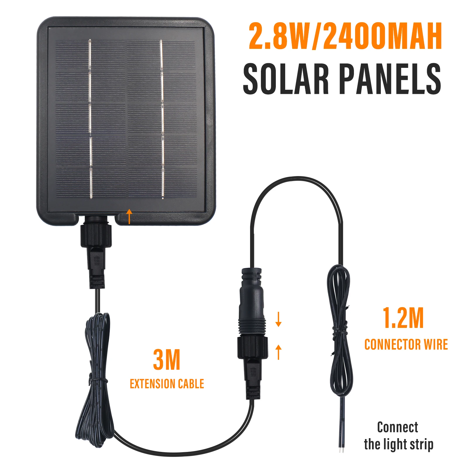 Si vous devez vérifier la bande lumineuse LED à énergie solaire pendant la journée, vous devez couvrir complètement le panneau solaire (par exemple avec un chiffon épais ou du carton).Sinon, le panneau solaire ne fonctionnera pas pour éclairer la bande LED.