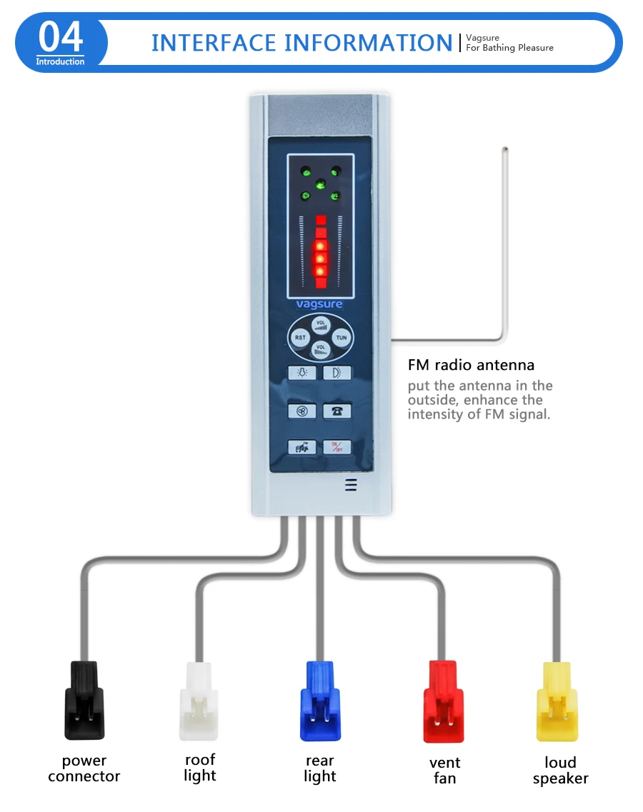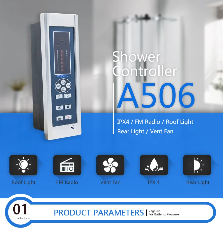Kit de contrôleur de douche Radio FM CE, panneau de douche numérique avec ventilateur/lumière/haut-parleur/transformateur, accessoires de doucheKit de contrôleur de douche Radio FM CE, panneau de douche numérique avec ventilateur/lumière/haut-parleur/transformateur, accessoires de douche