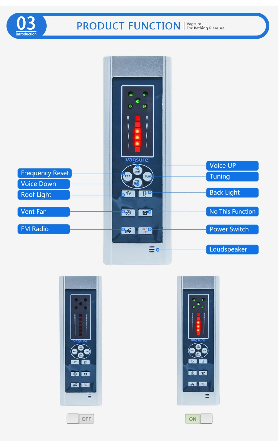 • Panneau de contrôle radio FM intégré pour une expérience de douche immersive