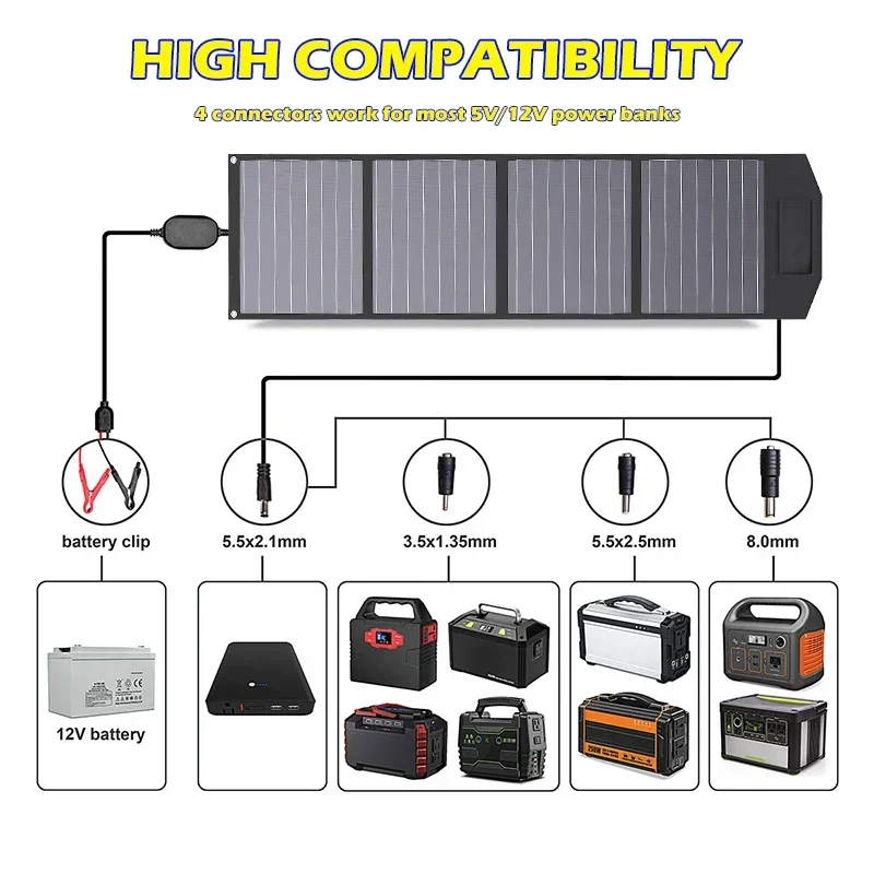 【Compatibilité maximale】 Les panneaux solaires utilisent plusieurs connecteurs et sont conçus pour être compatibles avec divers générateurs solaires et centrales électriques portables sur le marché, notamment Jackery, Ecoflow, Bluetti, Flashfish, Anker, et plus encore. Y compris les connecteurs DC5521, DC 7909 et Anderson, vous pouvez profiter d’une flexibilité maximale et d’options de connexion faciles pour une configuration facile.