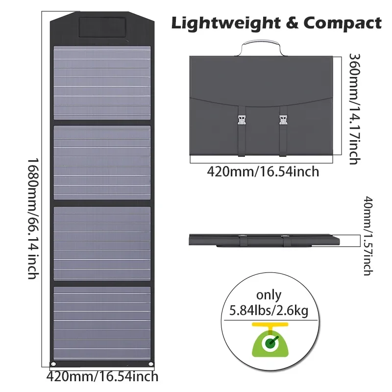 【Facile à plier et à porter, commodité ultime】Notre panneau solaire est doté d’un design pliable rapide, se pliant en une mallette compacte pour une portabilité maximale. Une fois dépliées, les quatre béquilles peuvent être facilement placées sur n’importe quelle surface plane, offrant une stabilité exceptionnelle pour une charge sans souci sous le soleil. Avec quatre trous métalliques offrant des options de montage supplémentaires, vous pouvez facilement l’accrocher à votre camping-car ou à votre tente.