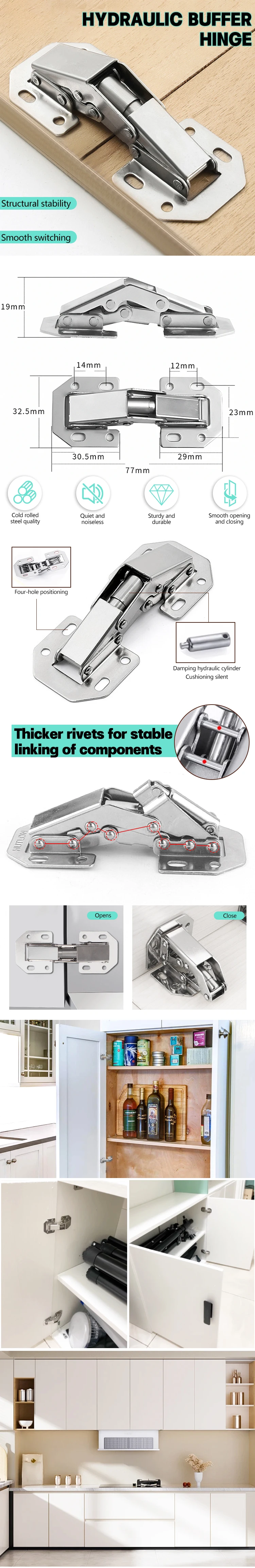 Kit de plaque de réparation de charnière d’armoire, charnière de porte de placard de cuisine, charnière tampon sans perçage, charnières en acier à 90 degrés, outils ménagers