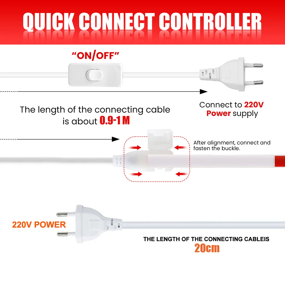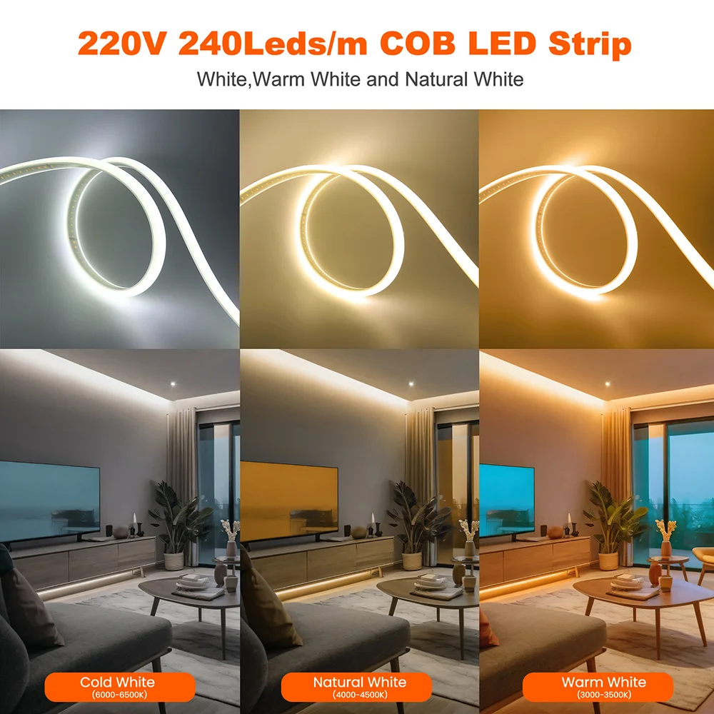 Easy to Install -IP67Waterproof COB NEON light strip can use indoor and outdoor with low temperature, fast connection and installation. (EU power plug Included)