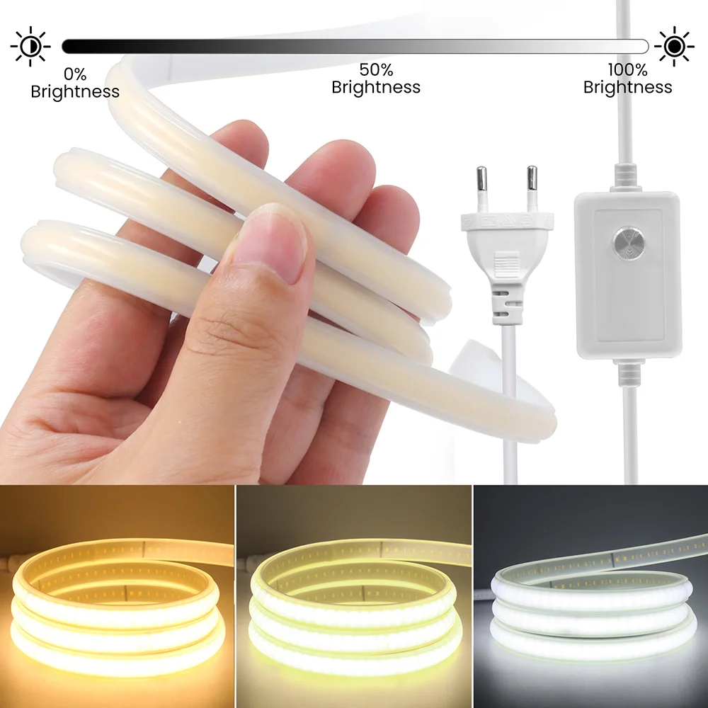New Type COB NEON LED Light – The new upgraded COB neon lamp is made of flexible transparent Silicone tube which make the light more consisted. You could control them with dimmer, it is very convenient to adjust brightness. Energy saving!