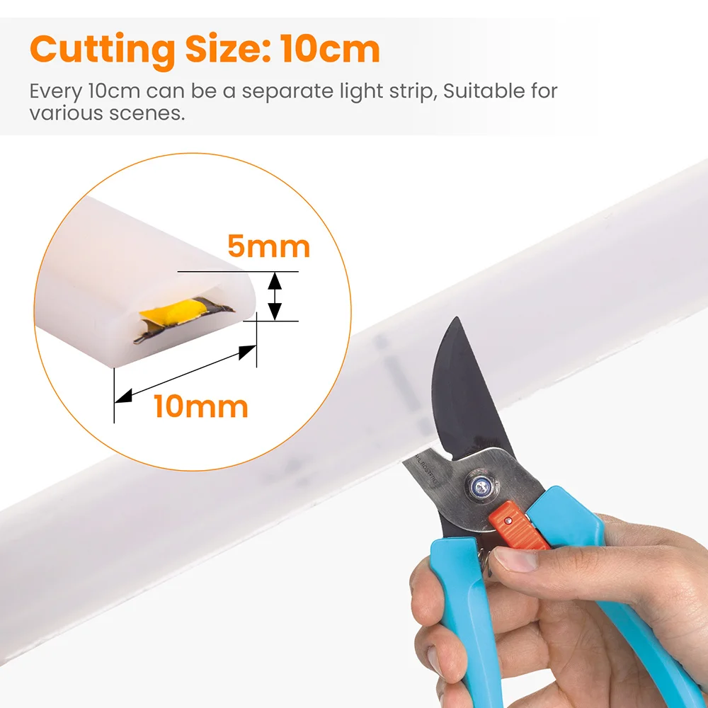 Cuttable & Extendable COB Neon Light Strip – It is easy to cut every 10cm(black market line), you can DIY special residential decoration or design unique commercial sign.