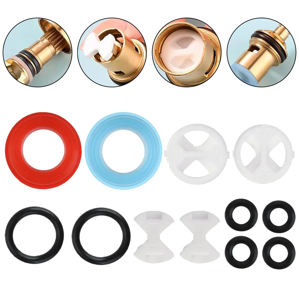 *Package includes: This tap valve cartridge replacement kit includes 2 fan-shaped valve discs, 2 round valve discs (forward + reverse), 2 large O-ring washers, 4 small O-ring washers, and 2 silicone washers (blue + red), providing a total of 12 pieces.