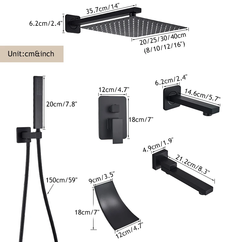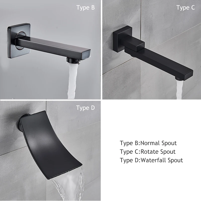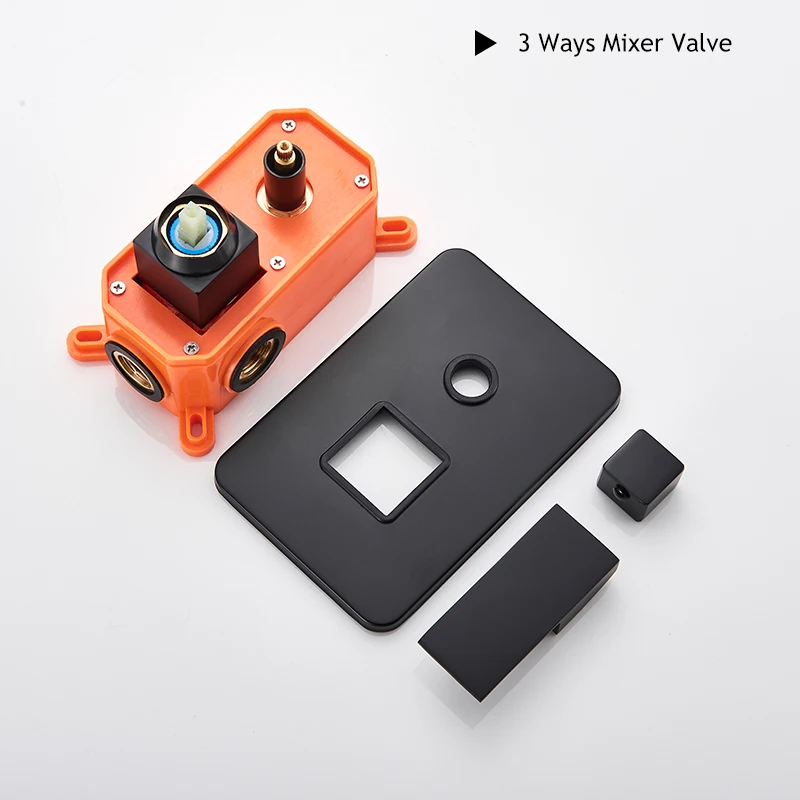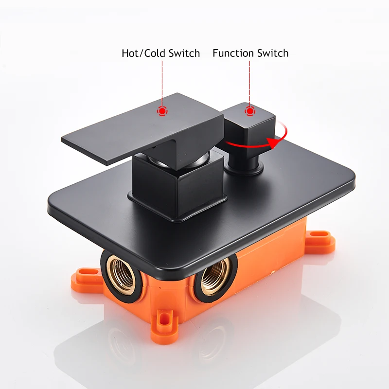 Ensemble de robinets de douche dissimulés noir mat, Kit de robinets de douche à cartouche intégrée, pommeau de douche pluie 2/3 voies système de rotation du robinet mitigeur de bain