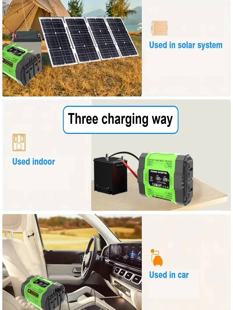 Tension d’entrée : DC 10,5 V ~ 15 V, (Quand la tension de la batterie est inférieure à 10,5 V, l’onduleur est une protection basse tension, lorsque la tension de la batterie est plus élevée à 15 V, la protection haute tension de l’onduleur)