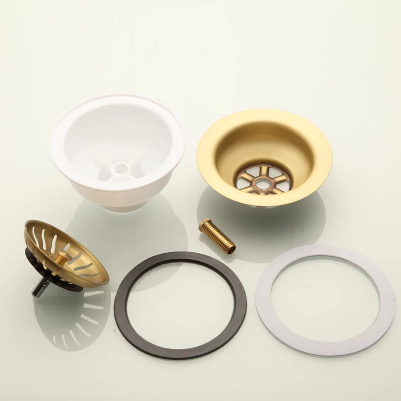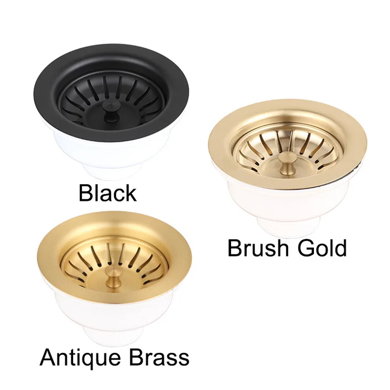 Kit de vidange de crépine d’égouttage d’évier noir 114MM pour évier de cuisine à bol unique Kit de déchets de drainage filtre en laiton doré brossé