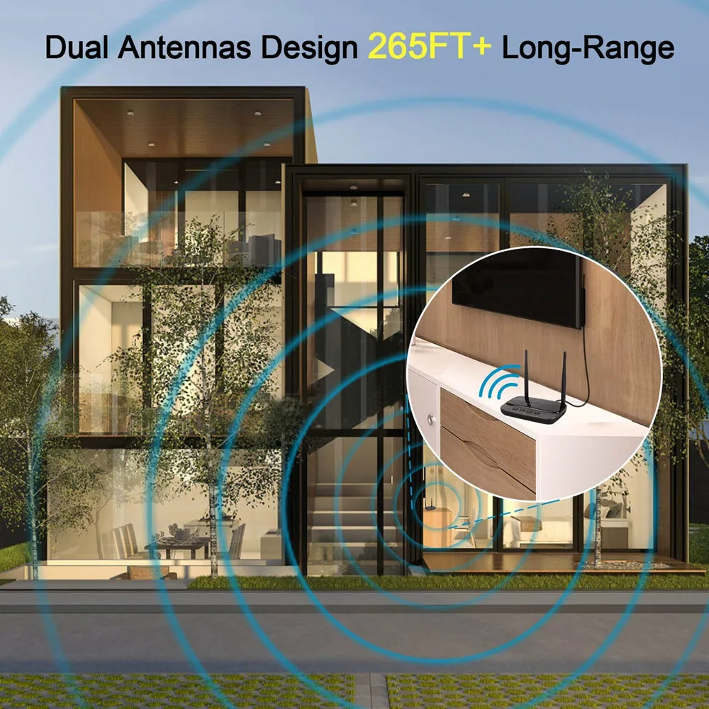 【DOUBLE ANTENNA 80 m/262 pieds LONGUE GAMME】En fait, testé sur une portée de 265 pieds (80 m) en plein air et à plus de 100 pieds (30 m) à l’intérieur sans aucun blocage ni retard. Les deux antennes présentent une portée de transmission large et longue, super stables et puissantes.Le récepteur émetteur BTmagic est parfait pour une connectivité intérieure et extérieure, peu importe où vos haut-parleurs/centre multimédia sont configurés