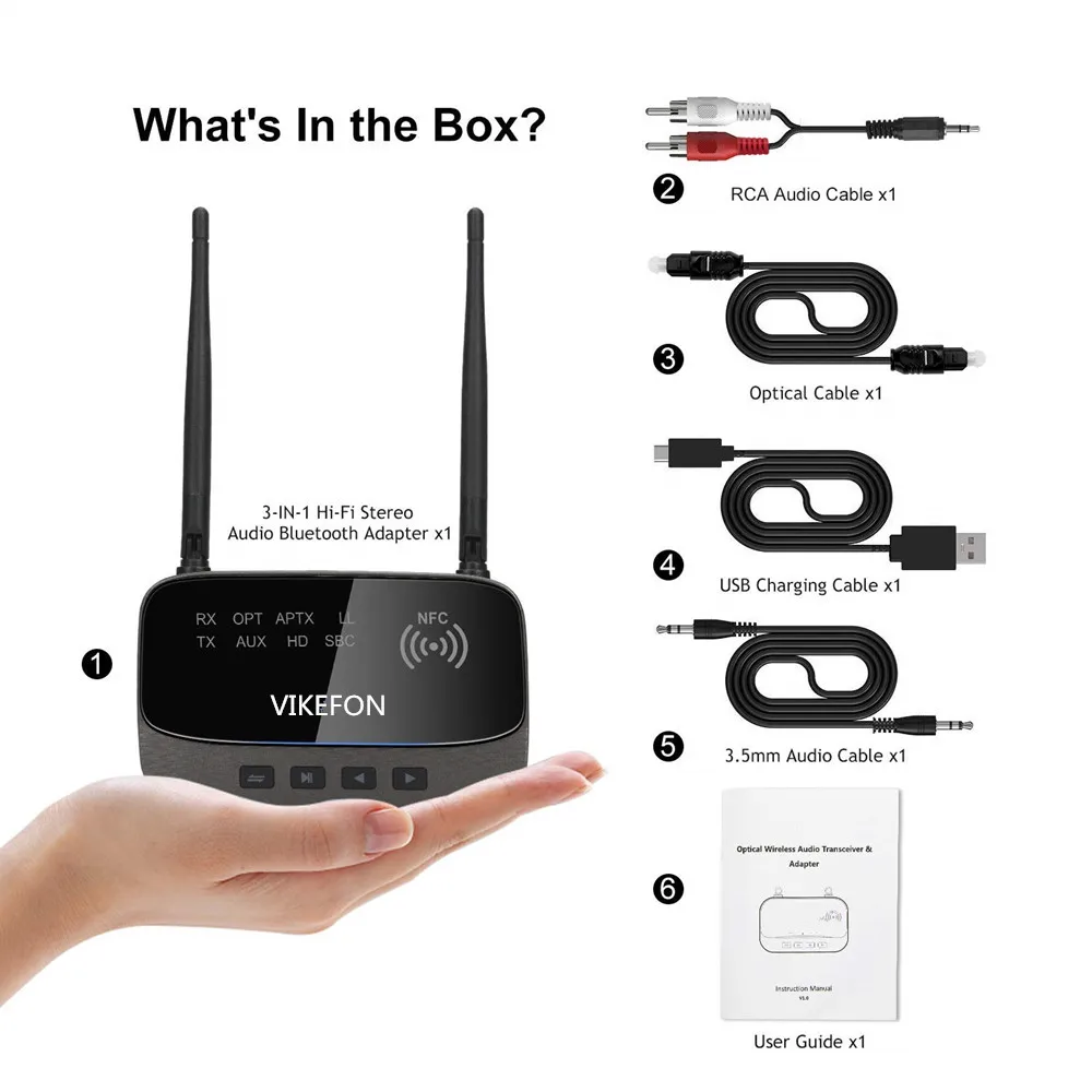 REMARQUE :Si vous souhaitez l’utiliser pour regarder la télévision et regarder des films sur votre PC, veuillez vous assurer que vos écouteurs Bluetoothprend en charge APTX FAIBLE LATENCE, Sinon, il y aura un peu de retard sonore.Si vous ne savez pas comment choisir les écouteurs Bluetooth APTX LOW LATENCE, VIKEFON A3S sera recommandé, suivez le lien d’achat :