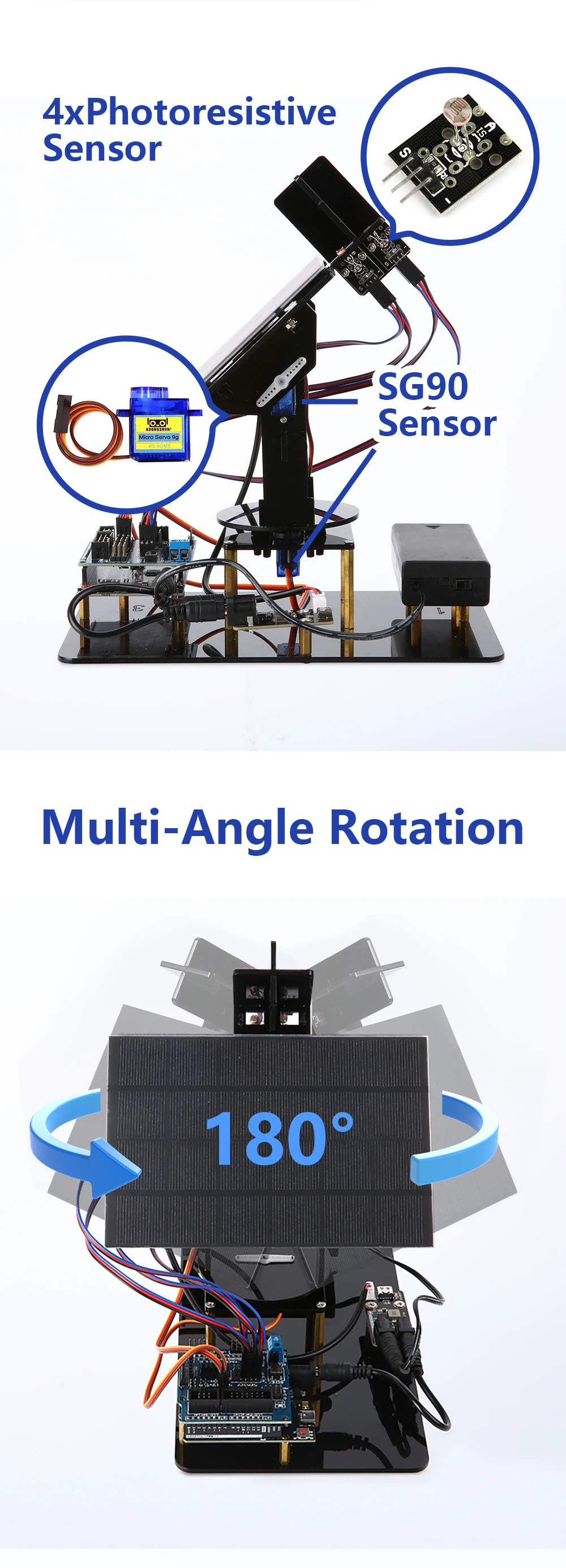 KUONGSHUN – kit éducatif de 8 ans et plus, système de suivi solaire intelligent, Kit de démarrage pour Arduino STEM