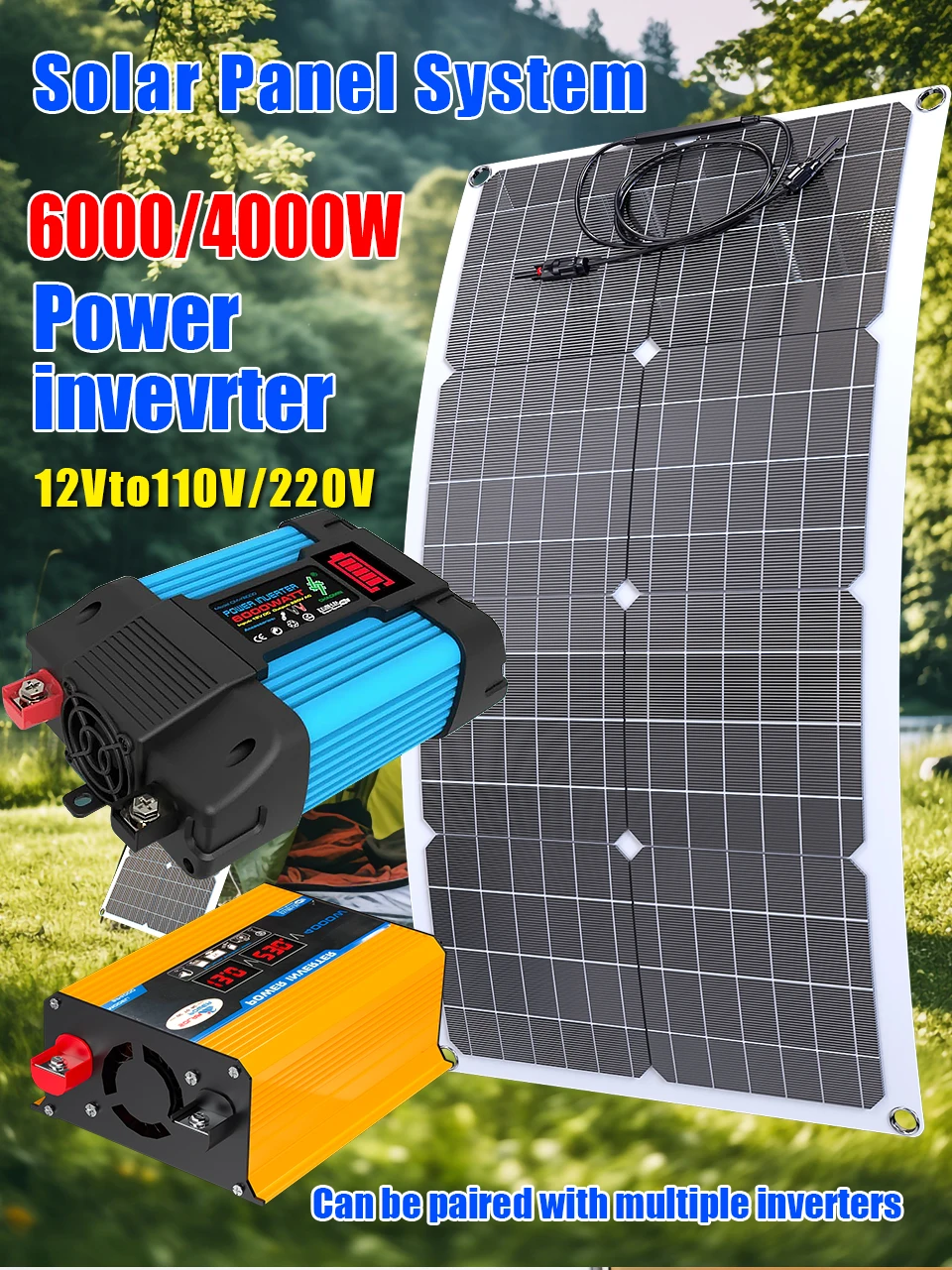 Onduleur de panneau solaire 6000W 4000W/110V-220V, contrôleur solaire, écran d’affichage LED, générateur d’énergie solaire, carte de charge intelligente
