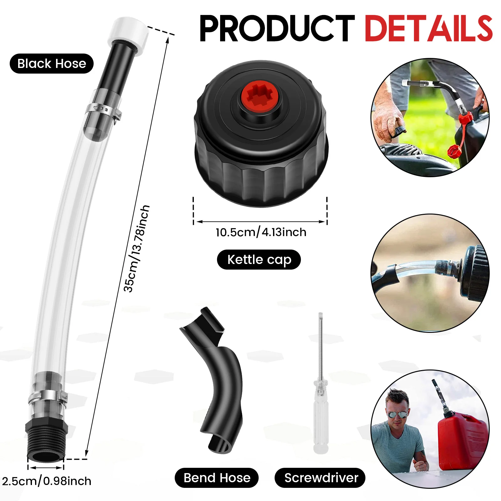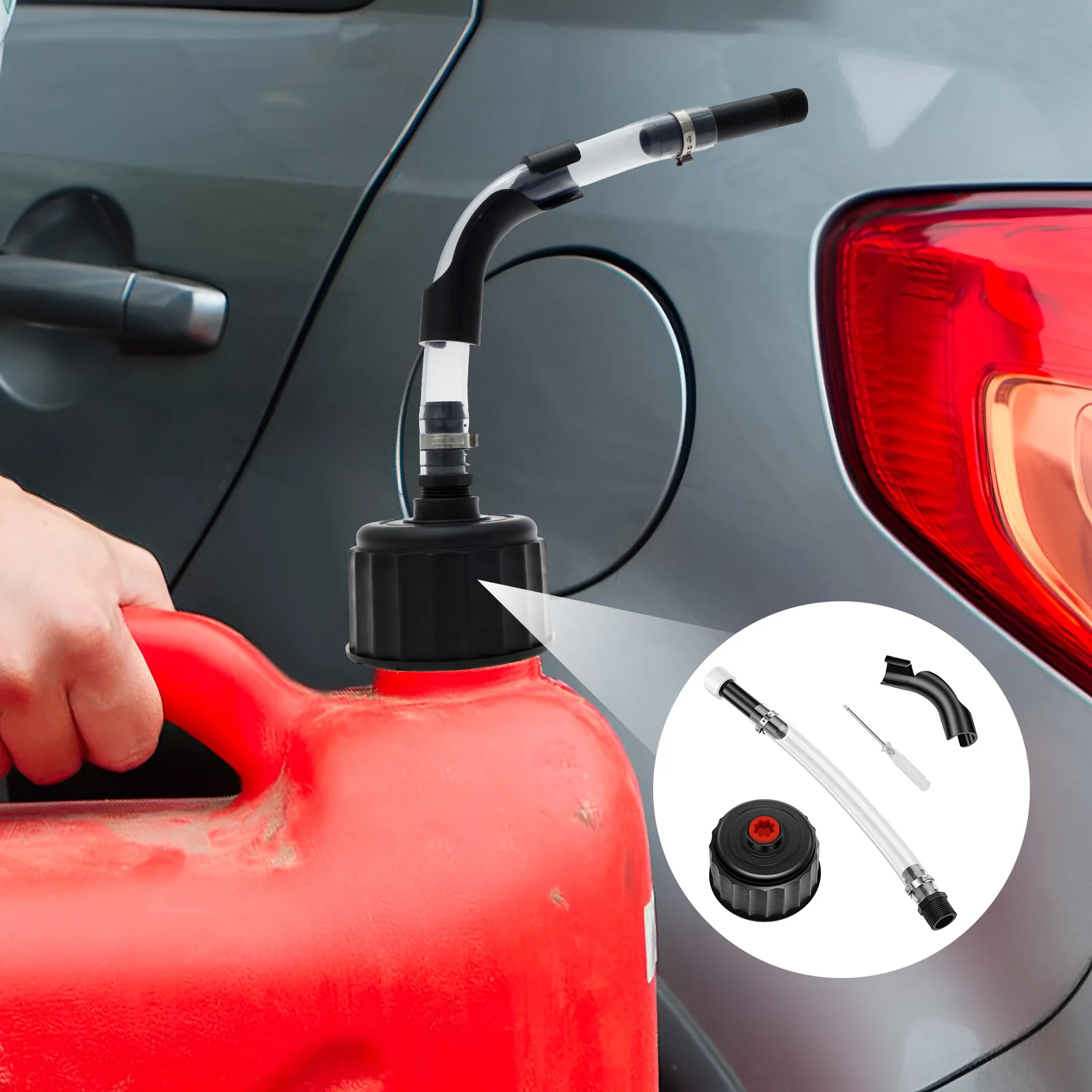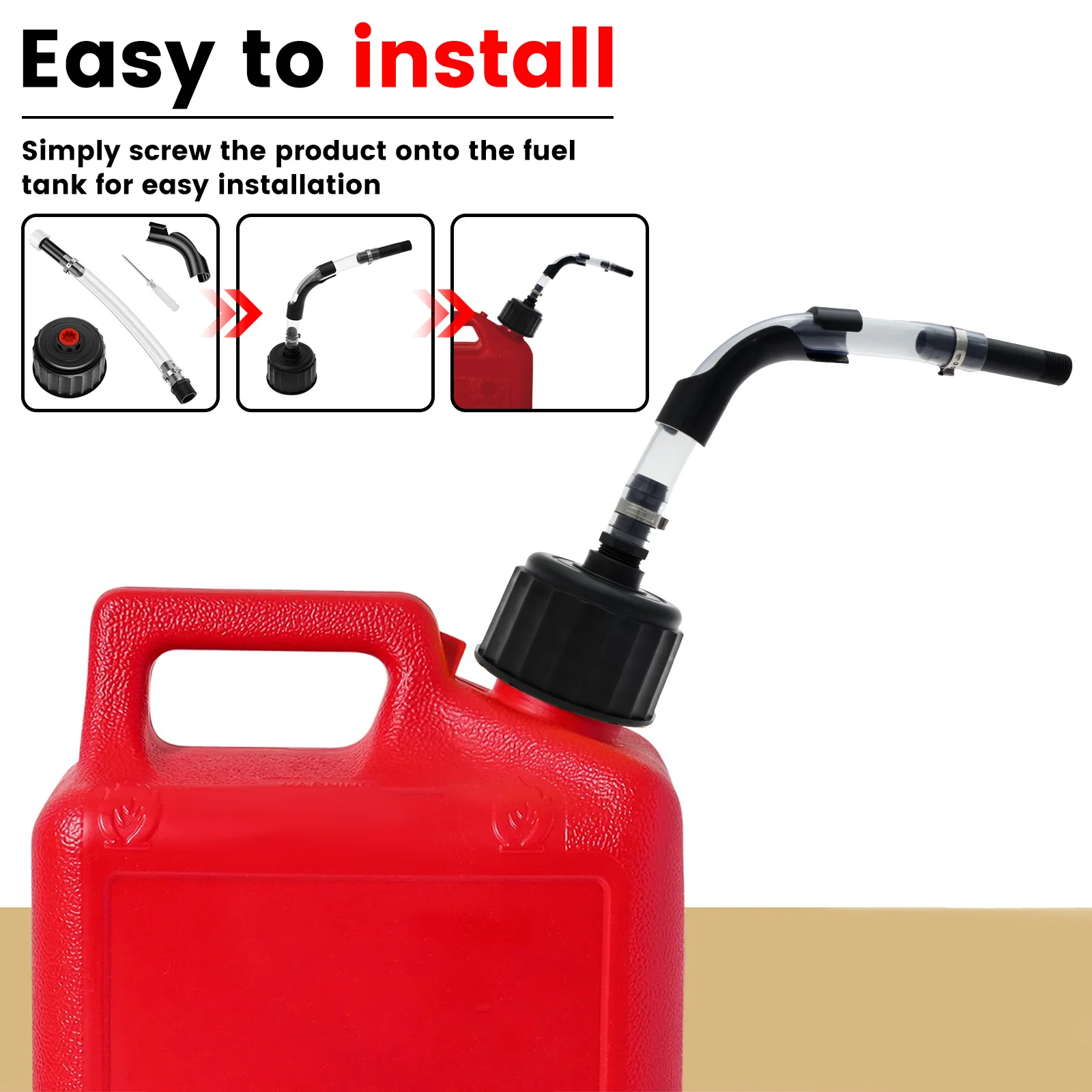 Fonction anti-fuite : le kit de tuyau de remplissage de carburant de 5 gallons fournit une connexion sécurisée.Le couvercle de pichet de 5 gallons augmente la zone de versage et l’anneau en fer forme d’un joint entre le tuyau et le joint en caoutchouc, arrêter les déversements ou les gouttes lors de l’inclinaison