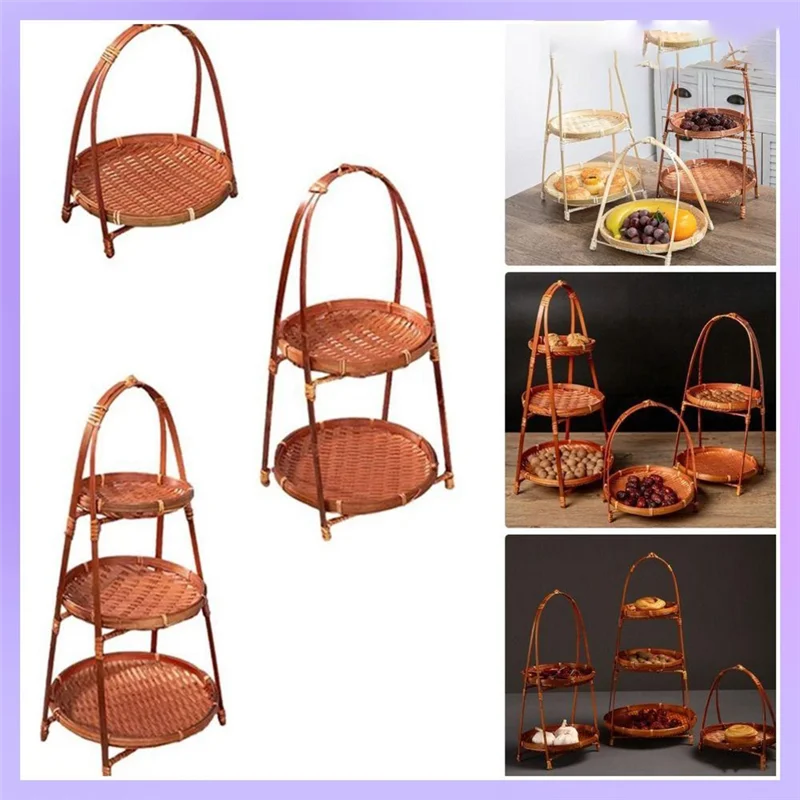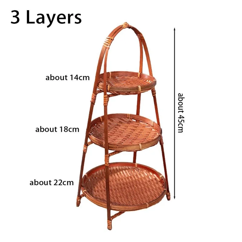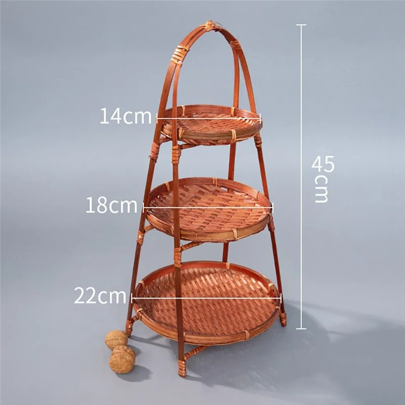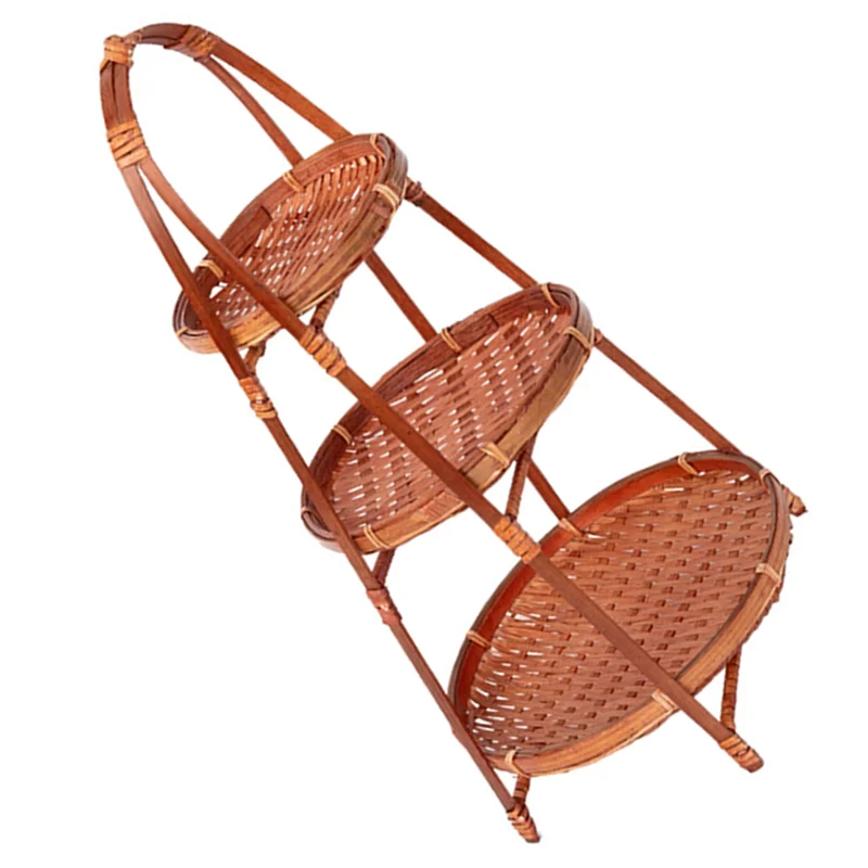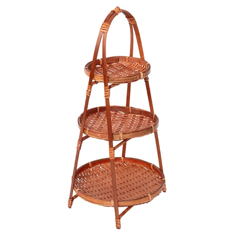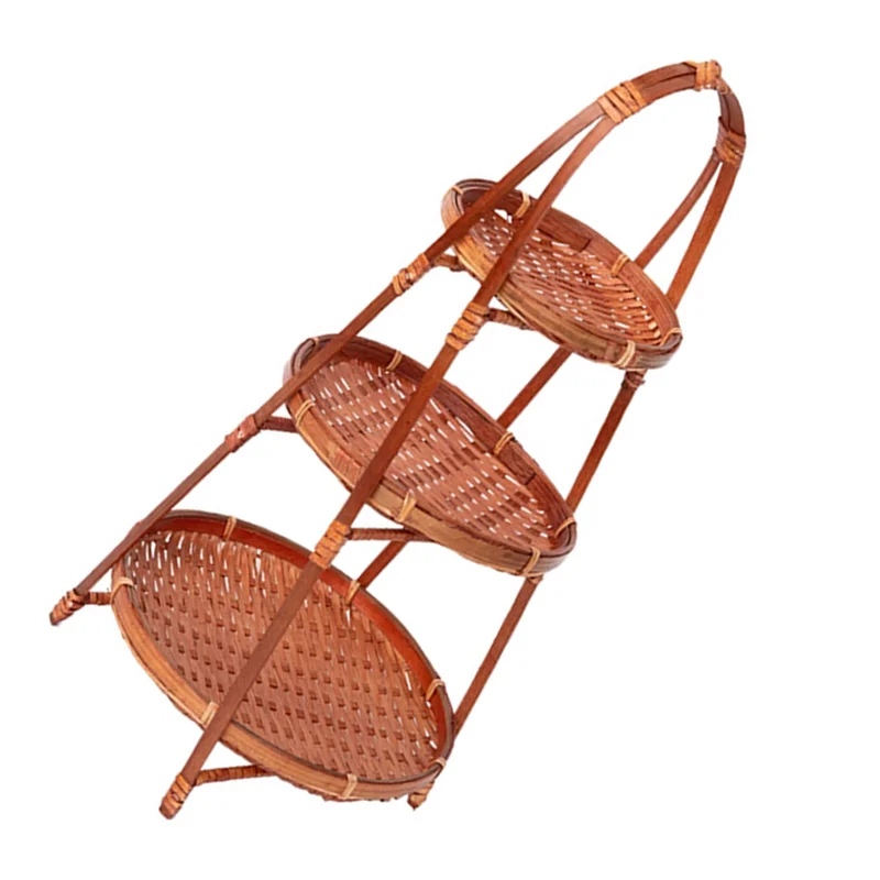 KYCOR-Bambou tissé panier 1 pièces fruits nourriture légumes tissé à la main 3 couches plateau debout panier de rangement multifonction pour la cuisine