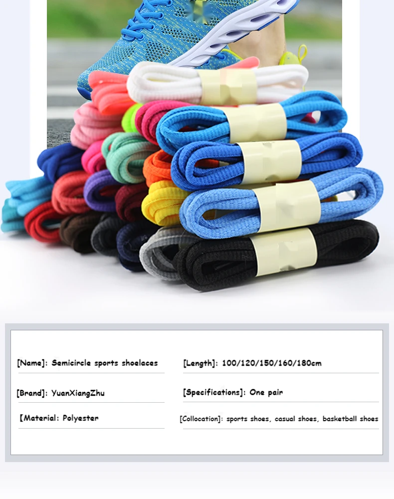 1 paire de lacets de chaussures ovales 24 couleurs lacets athlétiques demi-ronds pour chaussures de Sport/course lacet 100/120/140/160/180cm cordes de chaussures
