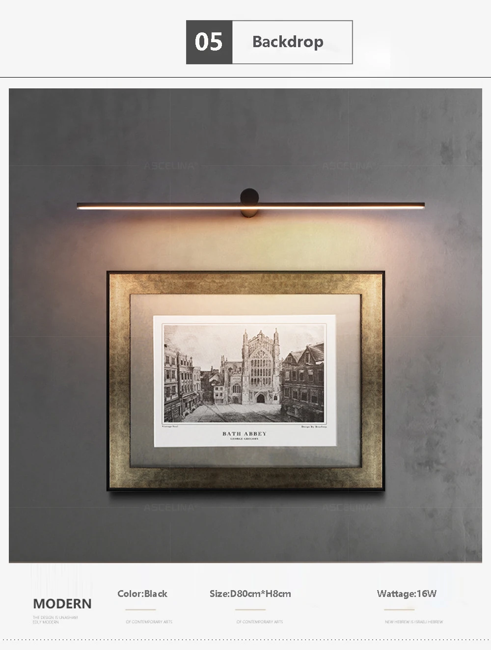 5. Le produit convient à l’éclairage de miroir de salle de bains et à l’éclairage de miroir de salle de bains, peut également être appliqué à la chambre à coucher, au salon et à d’autres scènes différentes.