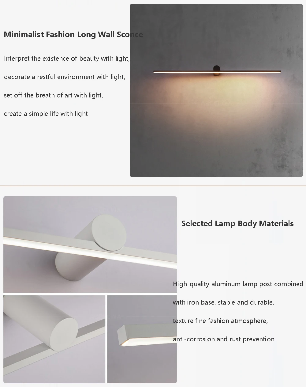 3. La forme du produit est une longue bande d’une lampe murale d’éclairage de mot, le corps de la lampe est fait de trois matériaux: matériel, aluminium et silicone.