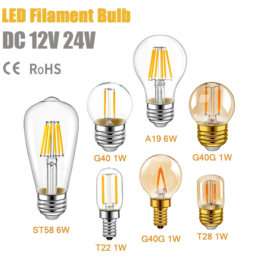A19 ST58 G40 T22 LED ampoule filment 1pcs, angle d’éclairage 360 °, 2700K blanc doux, 4500K blanc net, 2200K Ultra chaud, 1W = 8W,6W = 60W ampoule à incandescence Edison replcement