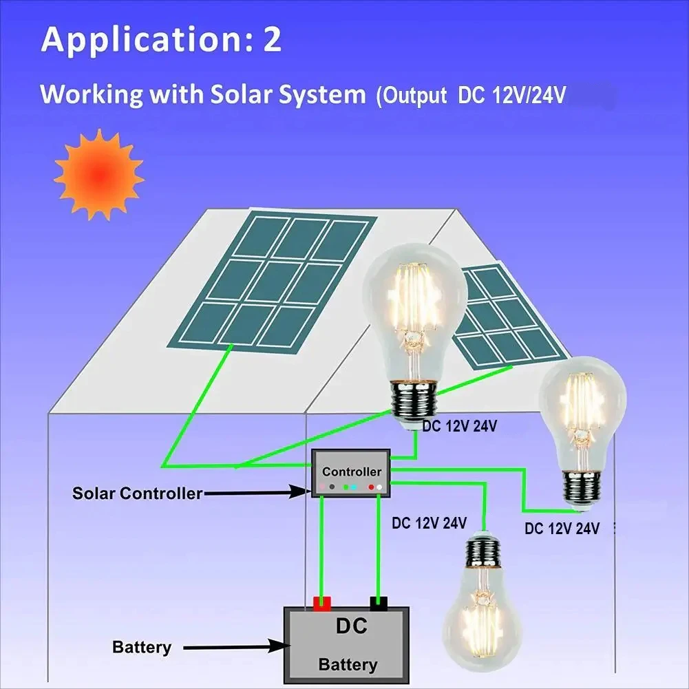 Fonctionne avec basse tension DC 12V 24V, largement utilisé pour le système de batterie solaire, le système d’éclairage de camping-car et de bateau, et actuellement le transformateur