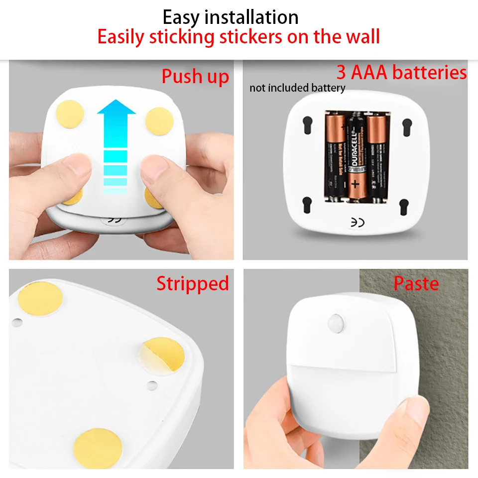 Lampe LED à piles avec capteur de mouvement intelligent, veilleuse pour chevet, chambre d’enfants, couloir, allée, toilettes, éclairage automatiqueLampe LED à piles avec capteur de mouvement intelligent, veilleuse pour chevet, chambre d’enfants, couloir, allée, toilettes, éclairage automatique