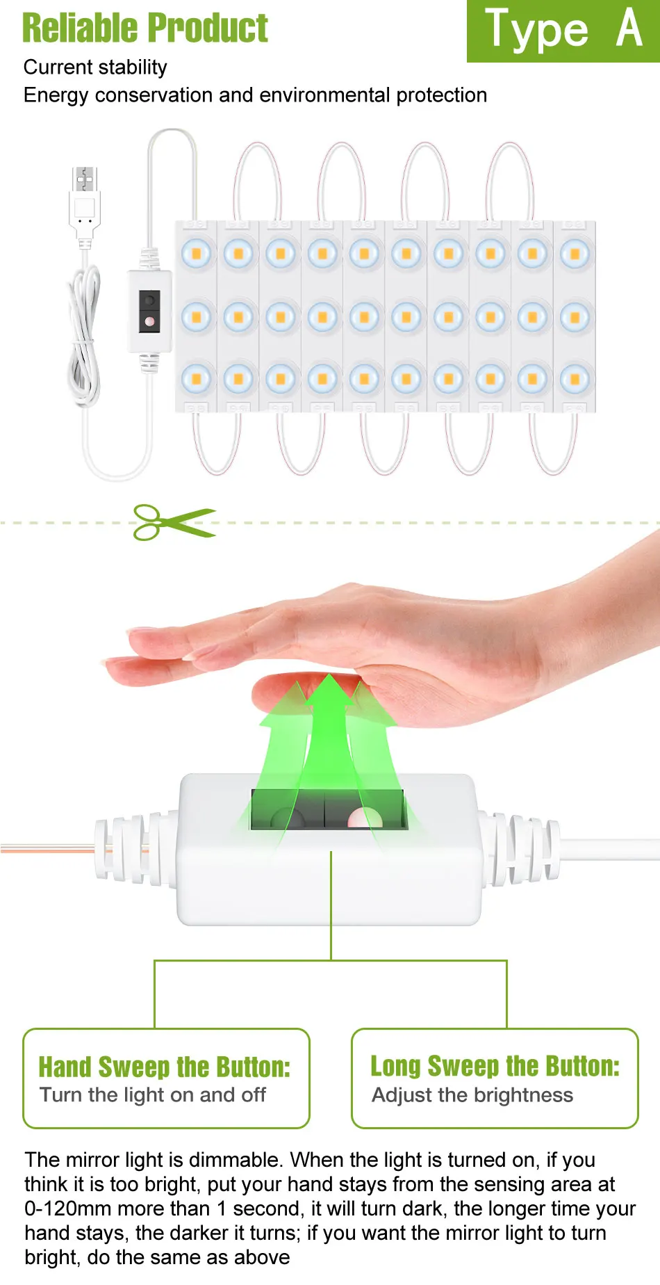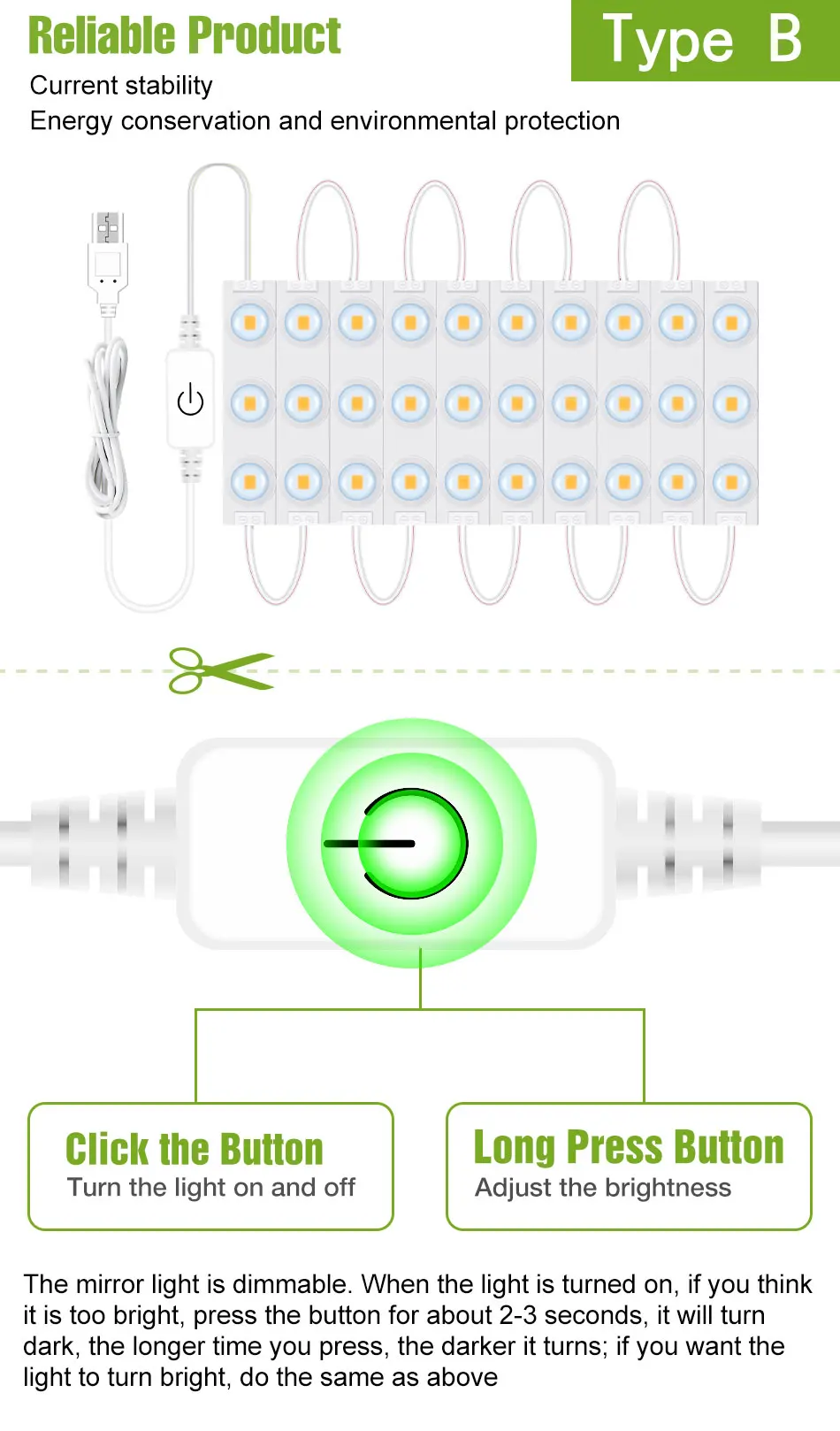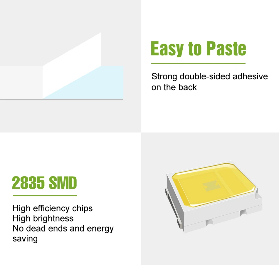 *Des rubans double face sont fournis, les ampoules peuvent être directement et rapidement collées sur des miroirs avec des rubans.