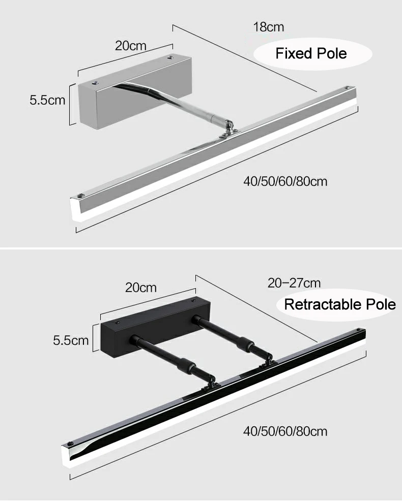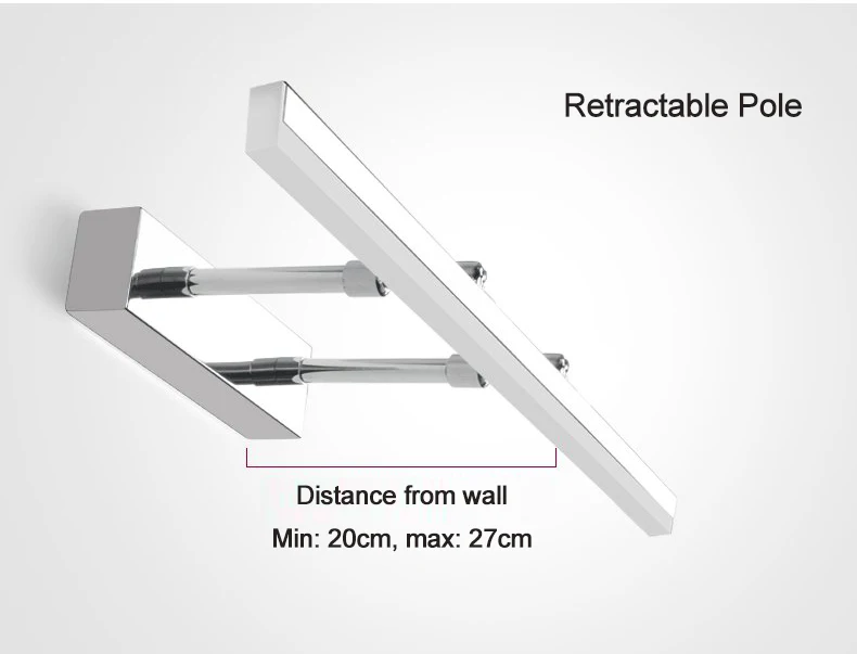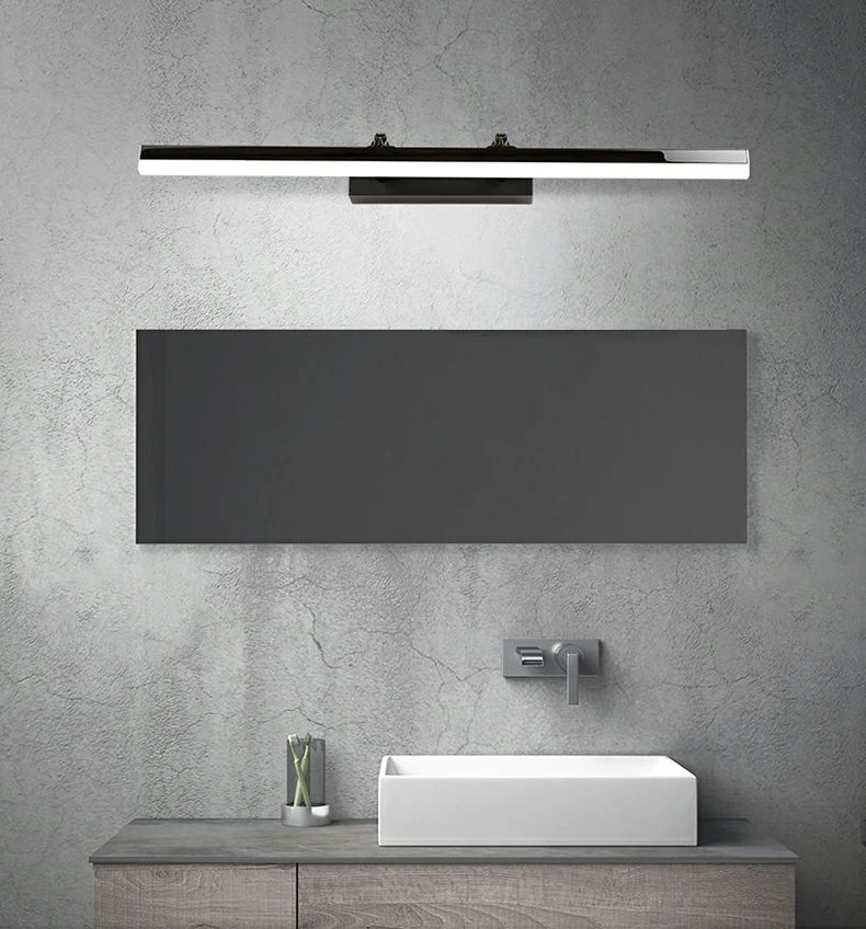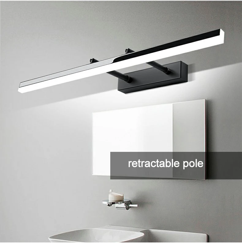 Miroir rétractable lampes avant salle de bain miroir armoire applique murale 40cm 50cm 60cm 80cm toilette applique murale noir Chrome AC 220V