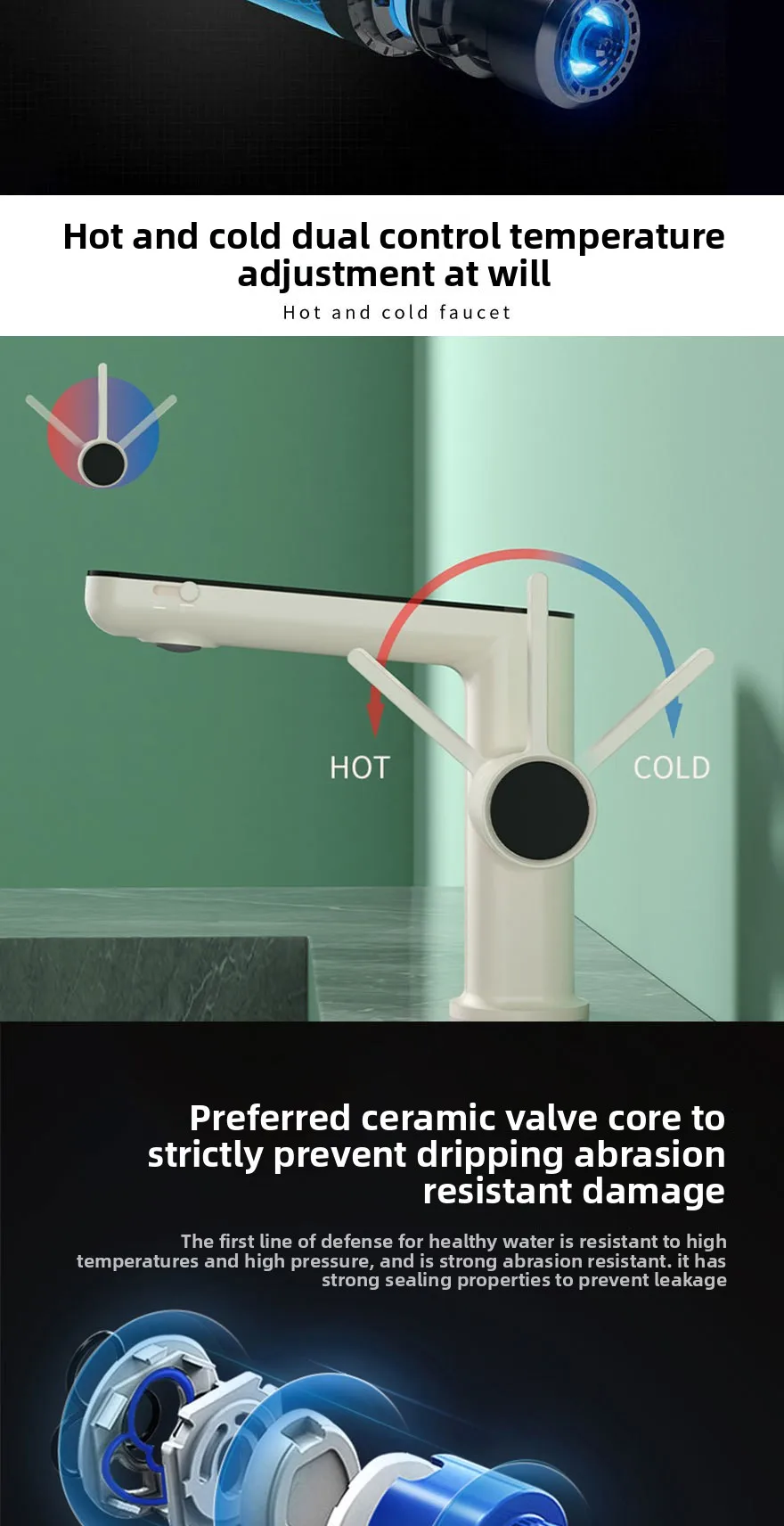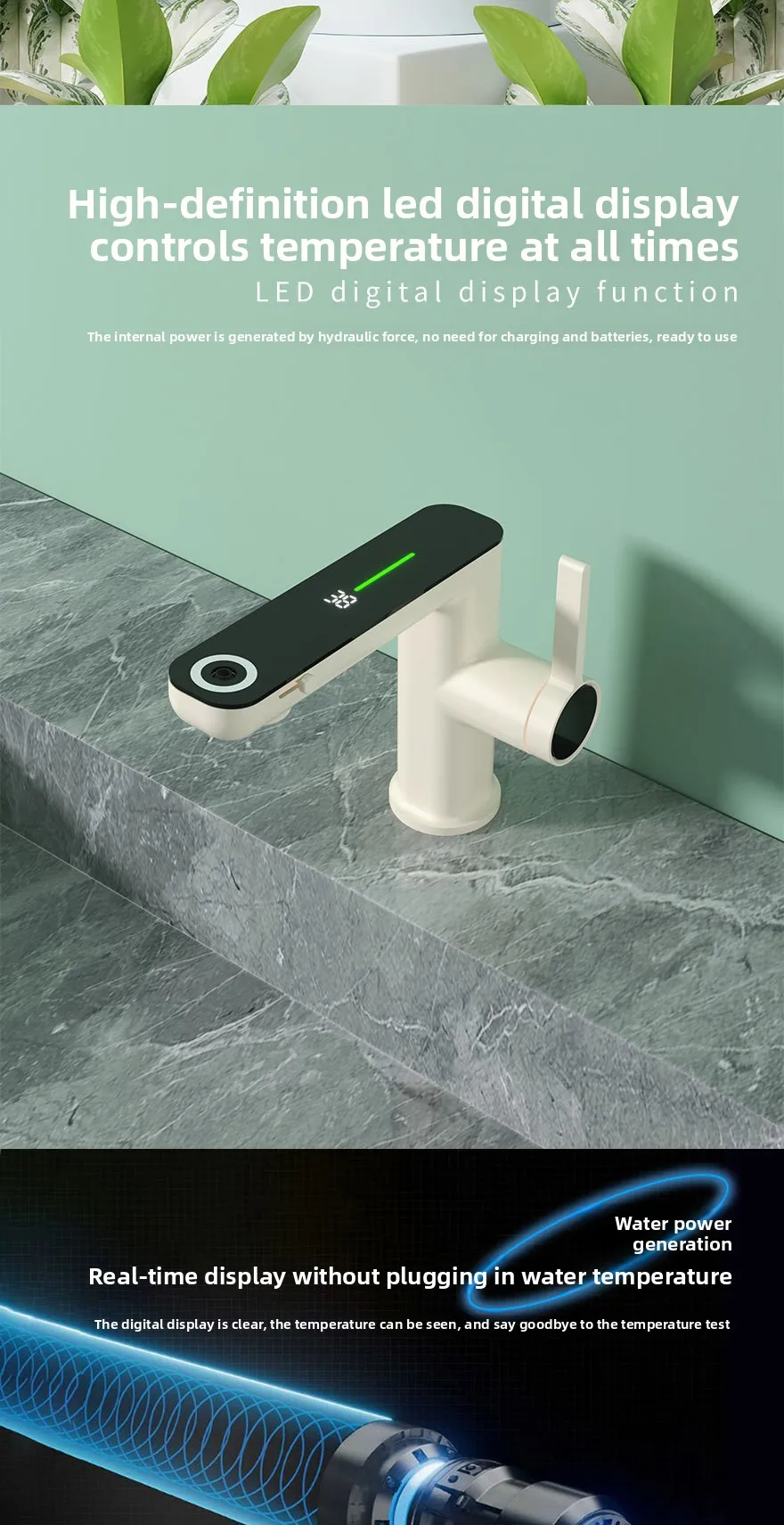 Lavabo de rinçage, robinet de lavabo froid et chaud, eau verticale, affichage numérique, salle de bains, lavage des mains, ménage, nouveau robinet anti-éclaboussures |