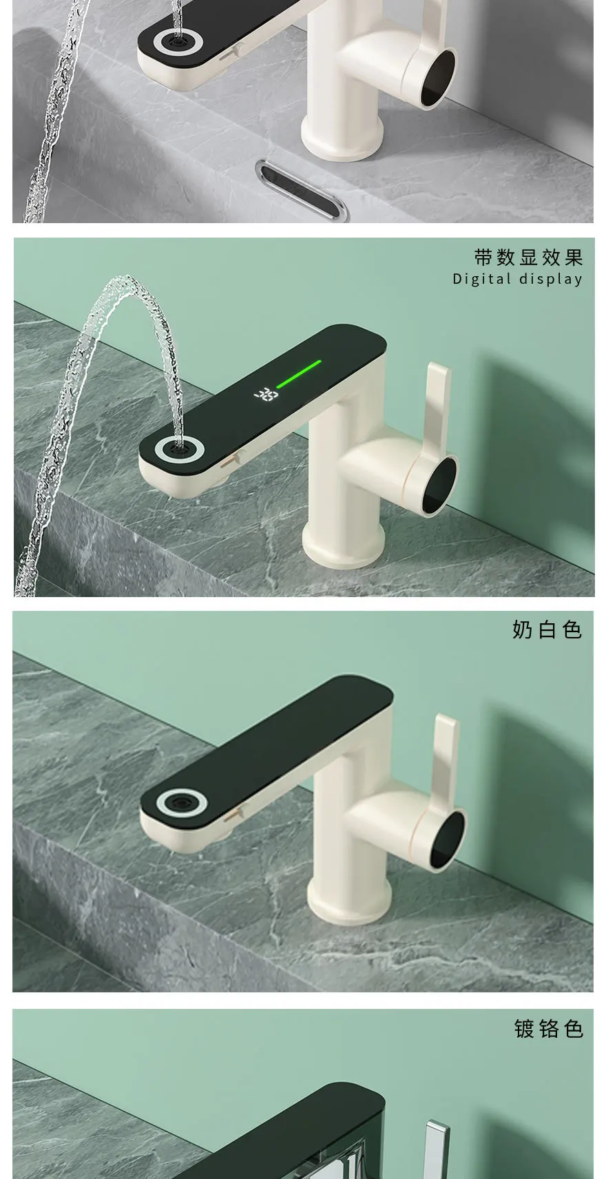 Lavabo de rinçage, robinet de lavabo froid et chaud, eau verticale, affichage numérique, salle de bains, lavage des mains, ménage, nouveau robinet anti-éclaboussures