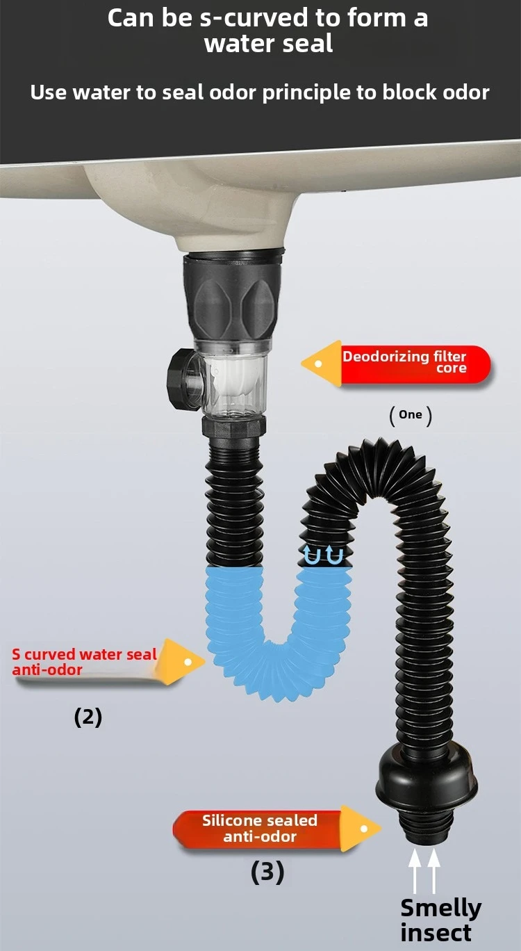 Lavabo de salle de bains anti-odeur, tuyau de descente universel, lavabo de salle de bains, ensemble de vidange en acier inoxydable |