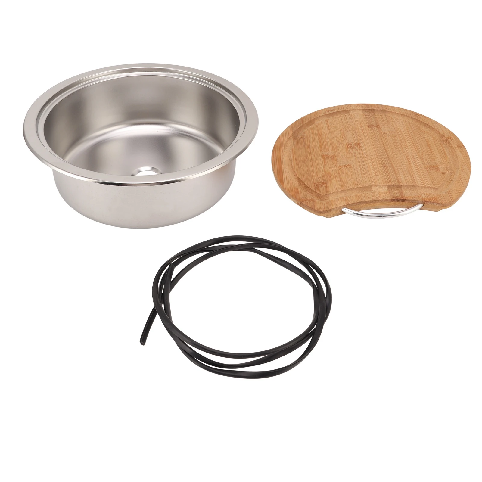 Évier RV en acier inoxydable 360x120mm, lavabo de grande capacité avec bloc à découper en bambou pour bateau et Yacht