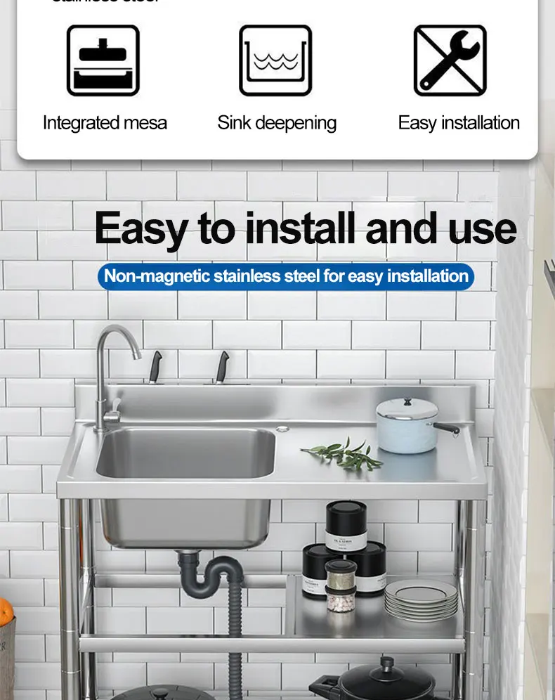 Évier de cuisine en acier inoxydable 304 – Facile à installer, résistant à la rouille avec résistance aux hautes températures