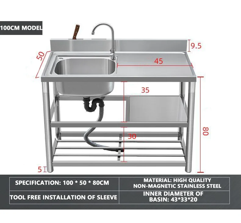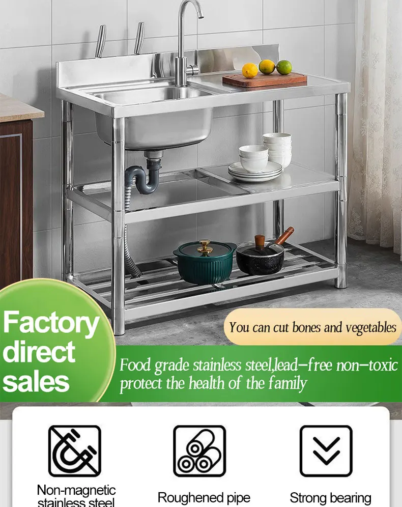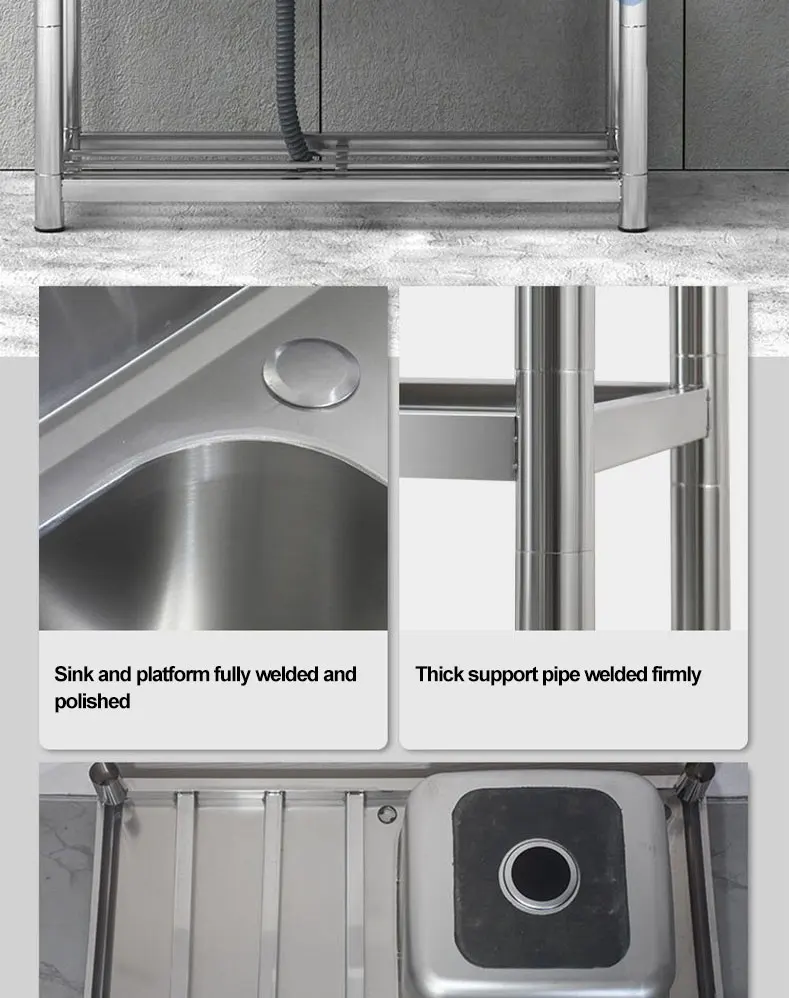 Construction en acier inoxydable de qualité supérieure : fabriqué en acier inoxydable 304 de qualité supérieure, cet évier utilitaire est résistant à la rouille, aux rayures et très durable.La surface présente une finition polie, garantissant qu’elle reste esthétique et facile à nettoyer.Adapté à une utilisation intérieure et extérieure, il résiste à diverses conditions météorologiques.