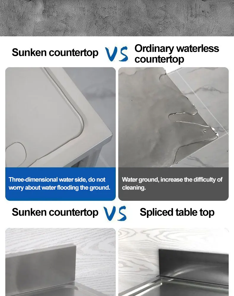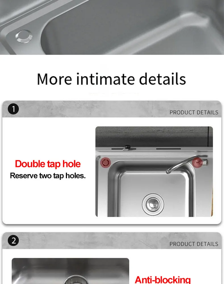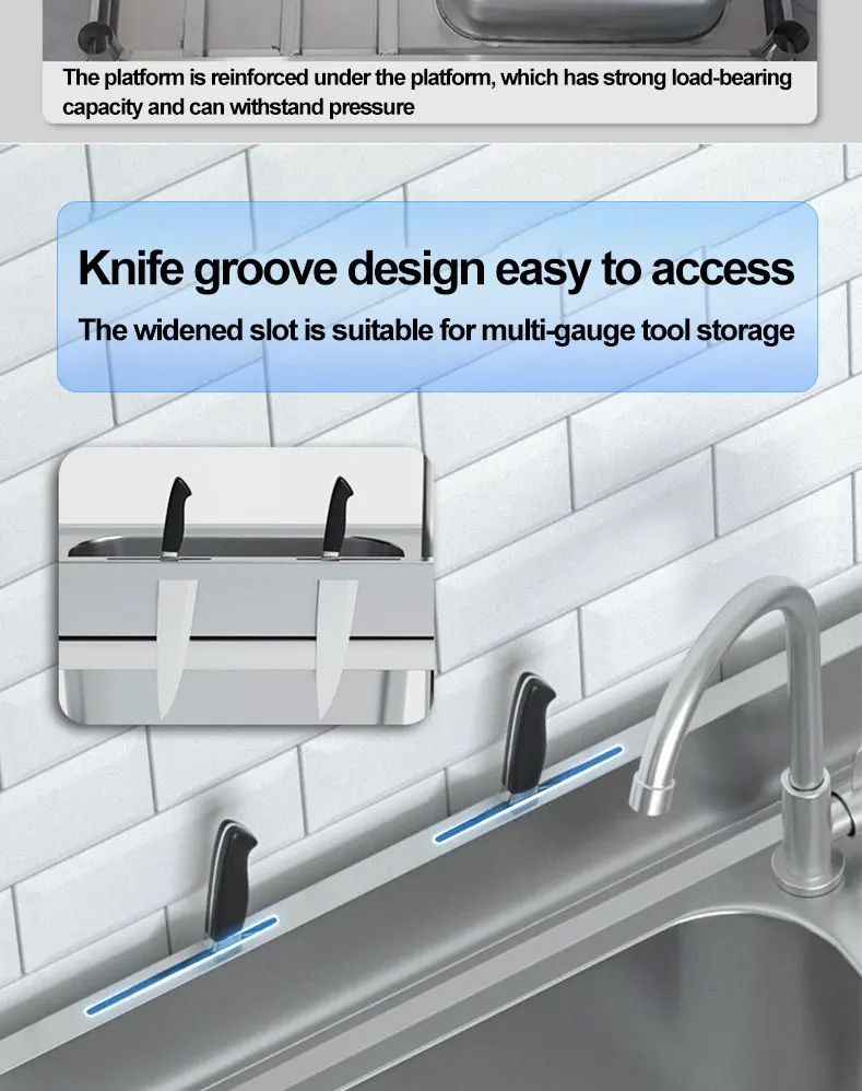 【Système de drainage efficace】 Livré avec une unité de drainage en acier inoxydable et un filtre amovible pour éviter le colmatage.Le système de drainage efficace assure un débit d’eau rapide, réduisant ainsi l’accumulation et maintenant l’hygiène.Le backsplash protège les murs et empêche les objets de tomber.