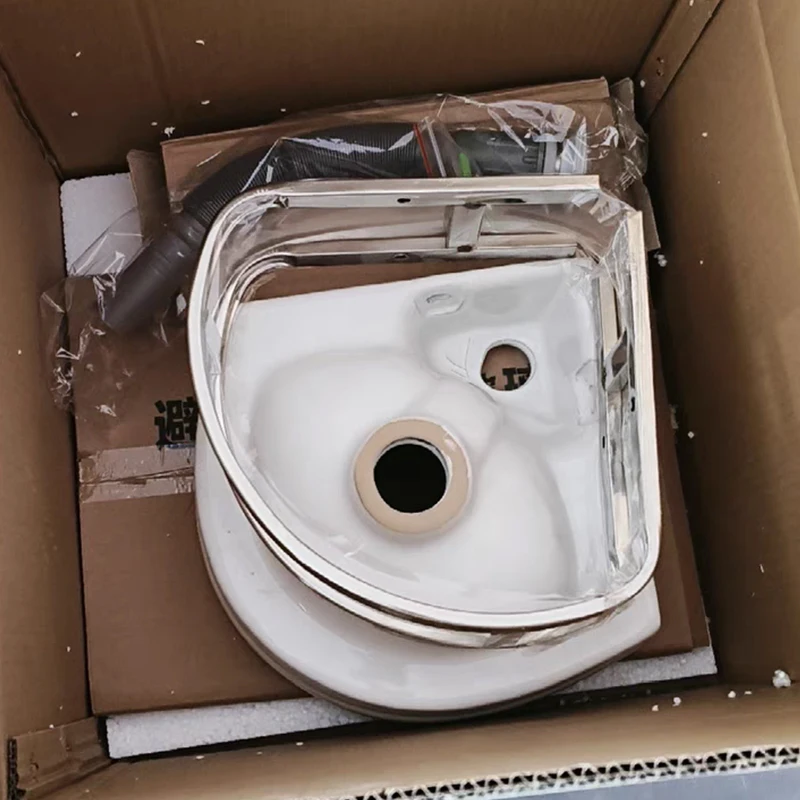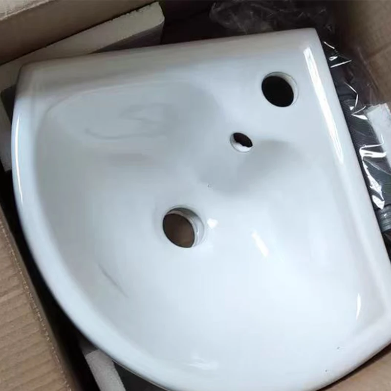 255*255*120mm petit appartement mur lavabo en céramique coin de toilette Triangulaire moderne minimaliste salle de bains évier robinet