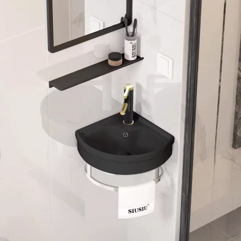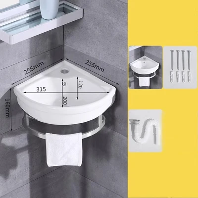 Lavabo mural en céramique pour petit appartement, 255x255x120mm, coin de toilette triangulaire, moderne et minimaliste, robinet de lavabo de salle de bains