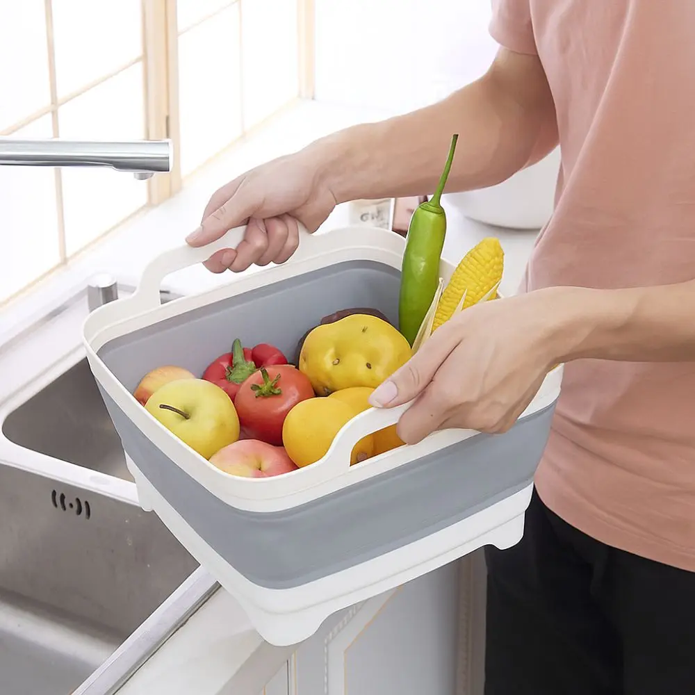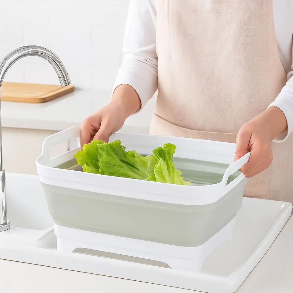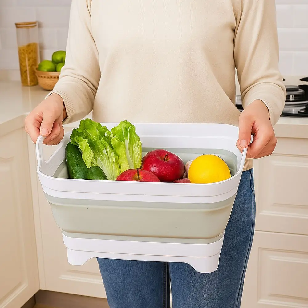 Lavabo pliant de grande capacité, bassin de lavage de légumes épais avec poignées, bas carré pour fruits et légumes