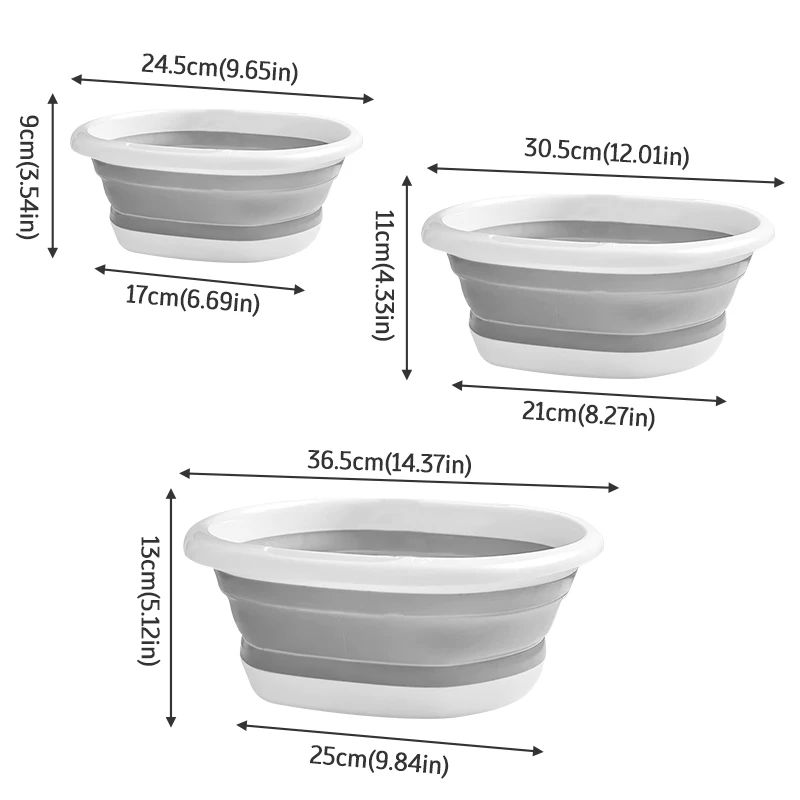 Chaque bassin pliable a deux poignées étendues qui marcez-le facile et confortable pour tenir le bassin pliable lorsque plein d’articles ou d’eau.Trous de suspension pour un facile à accrocher au mur.