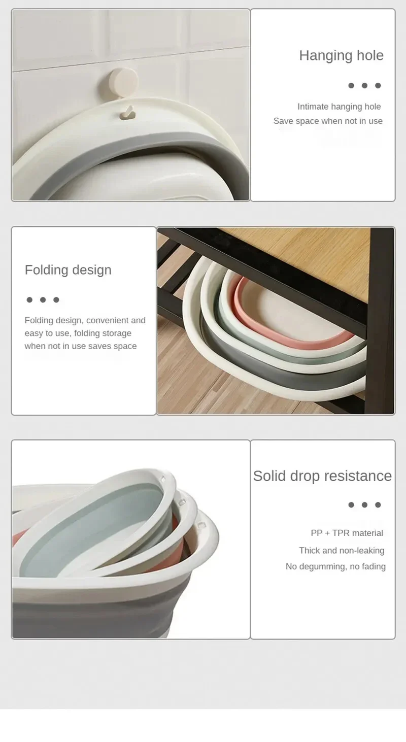 Buves pliantes portables, lavabos pliants, baignoire en plastique, bassin de bain pour bébé, baignoire à linge suspendue, accessoires de salle de bains et de cuisine