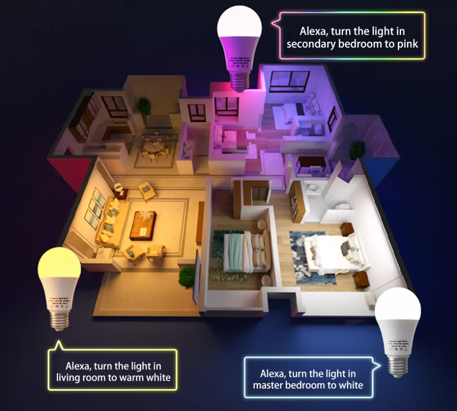 • Compatibilité des commandes vocales:Fonctionne avec Alexa, l’Assistant Google et Tuya Smart Home, ce qui vous permet de contrôler les ampoules avec votre voix.