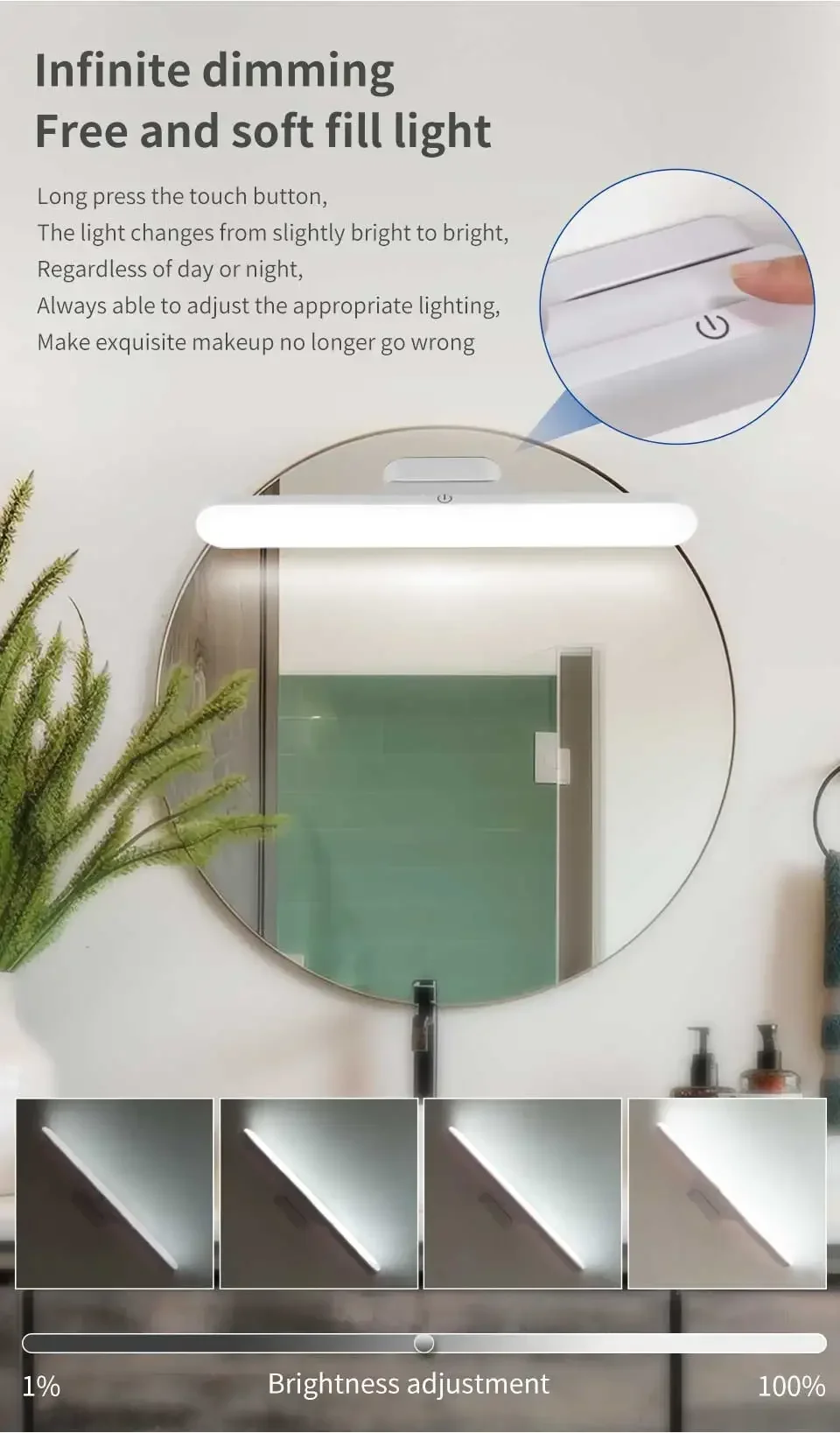 La tête de la lampe peut être librement ajustée de haut en bas de 90 degrés, positionnant avec précision l’angle d’éclairage pour répondre aux besoins de maquillage, de lecture et d’autres besoins.