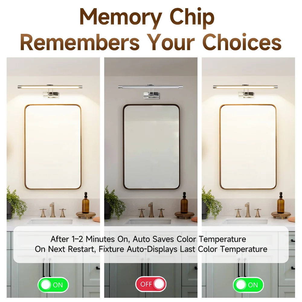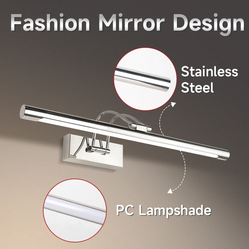 3.Conception spéciale devant le miroir : la longueur de la bande lumineuse est modérée, la lumière est uniforme et douce et il est optimisée pour l’éclairage devant le miroir pour éviter l’éblouissement et garantir les effets d’éclairage clairs.Convient pour le maquillage, les soins de la peau et autres scènes.
