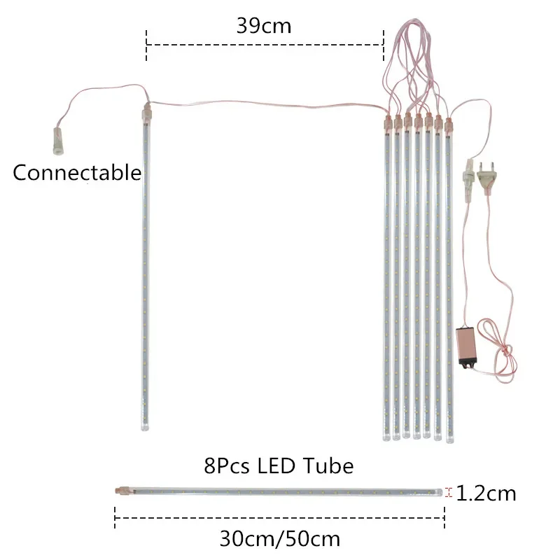 Guirlande lumineuse LED pour fête de météores, guirlande lumineuse féerique, 30cm, 50cm, 8 tubes, étanche, décoration de jardin et de vacances