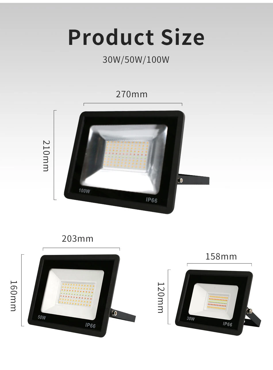 Taille : 158*120mm(30w), 203*160mm(50w), 270*210mm(100w)